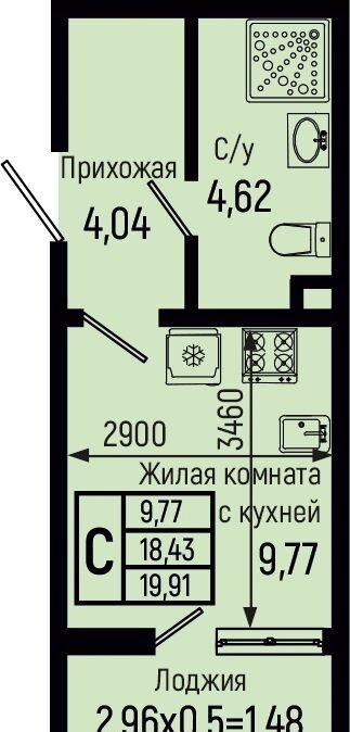 Общая площадь 19.9 м2