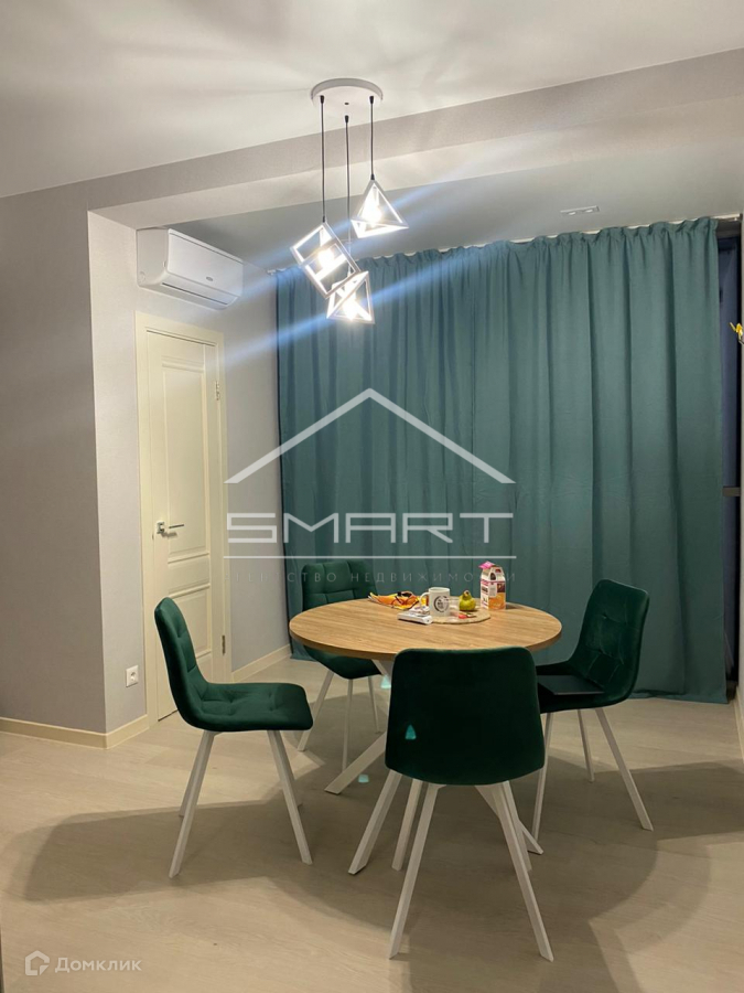 В квартире панорамные окна, вид открывается на внутренний двор. Квартира уже с ремонтом, есть мебель (кровать, стол, холодильник, плита и т.д.), полностью укомплектованный санузел (ванна, унитаз, стиральная машина, шкаф, зеркала, раковина), 3 кондиционера, натяжные потолки, покрытие пола - светлый ламинат, стены- обои), есть подсобное помещение на кухне и в спальне, в котором удобно можно хранить вещи. + дизайнерский план обустройства квартиры.