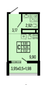 Общая площадь 17.97 м2
