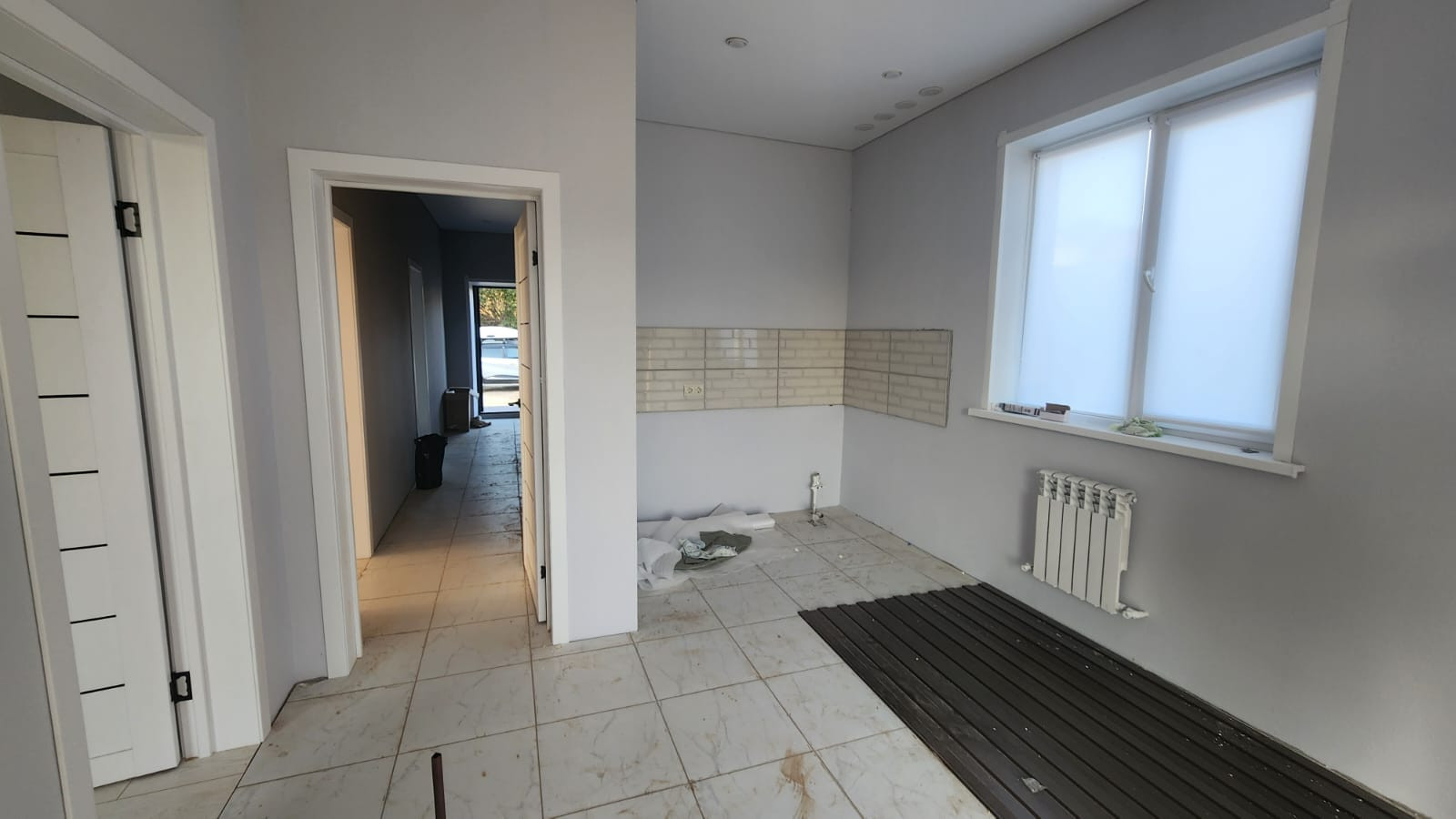 По всему периметру разведены теплые полы,