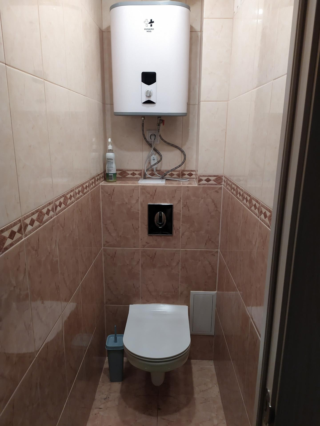 -Произведен ремонт под ключ туалета с установкой очень качественной инсталяции производства ГРОЯ,  установлен дежурный бойлер и вытяжка.
