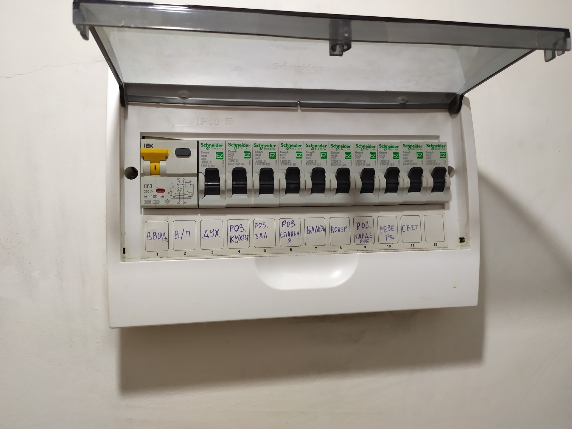 -Электропроводка с отдельным щитком в квартире. Все провода с увеличением сечением. Розетки и выключатели производство Шнайдер.