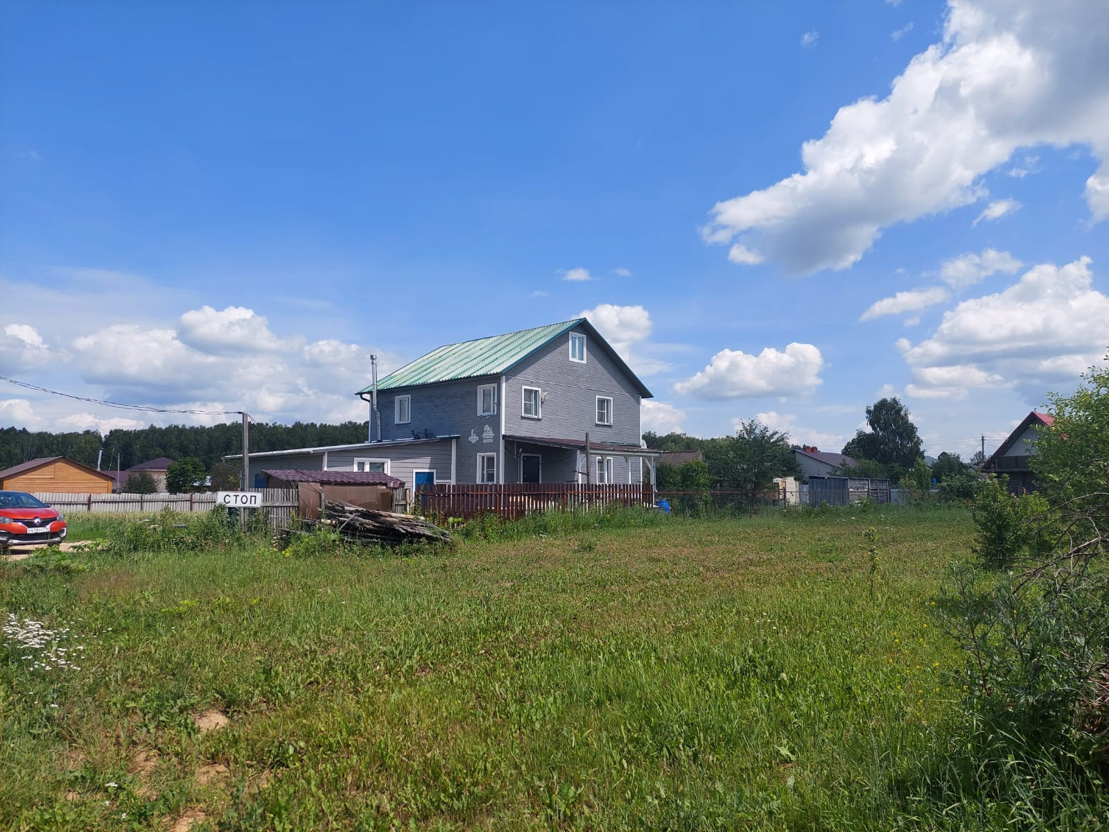 Участок ровный, правильной прямоугольной формы(15х55 м). На участке посажены плодовые деревья (слива, вишня, яблони, груши).  Ягоды - малина, смородина, клубника, земляника. Есть теплица 6х3, хозблок. К дому пристроенный гараж 6х6 .