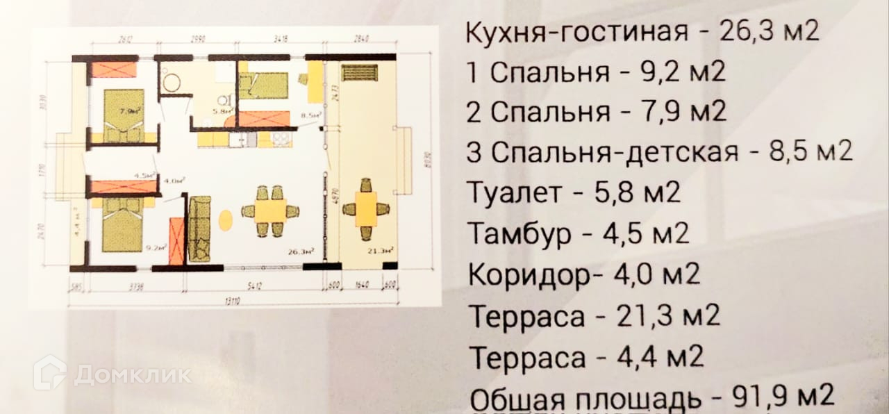Общая площадь 92 м2
