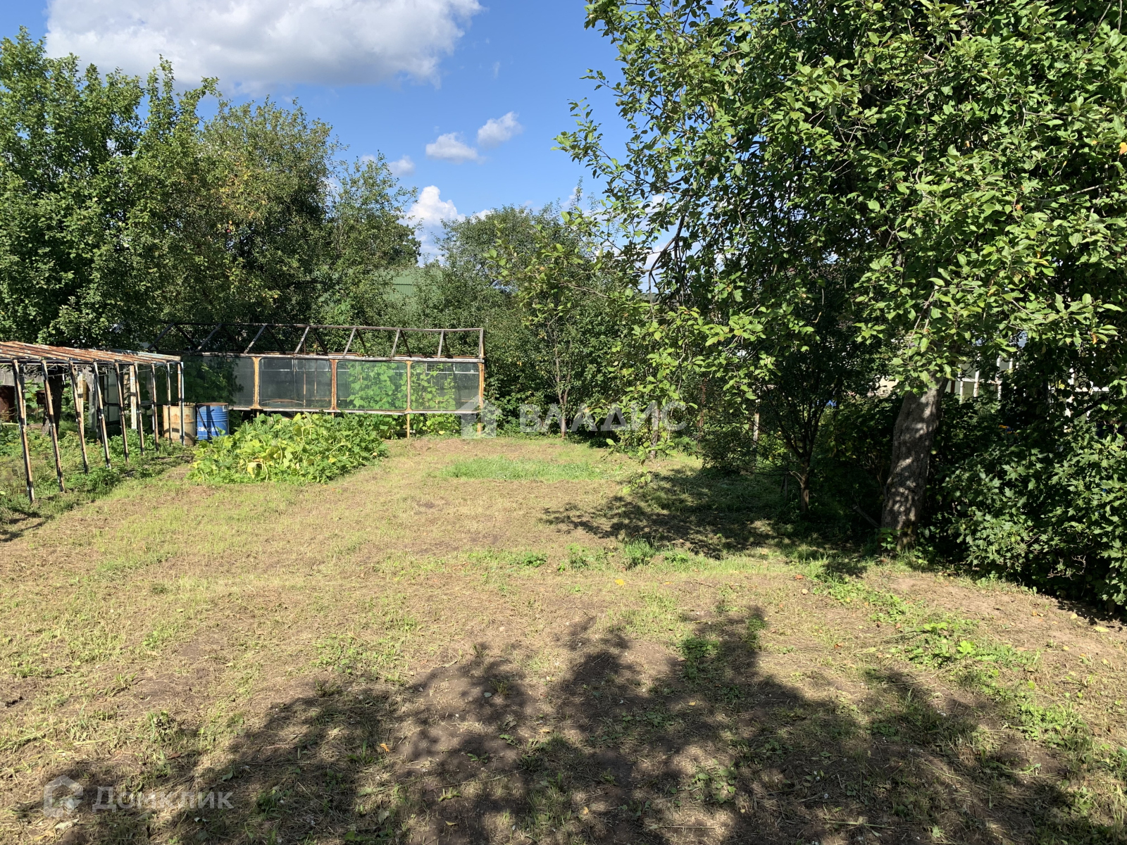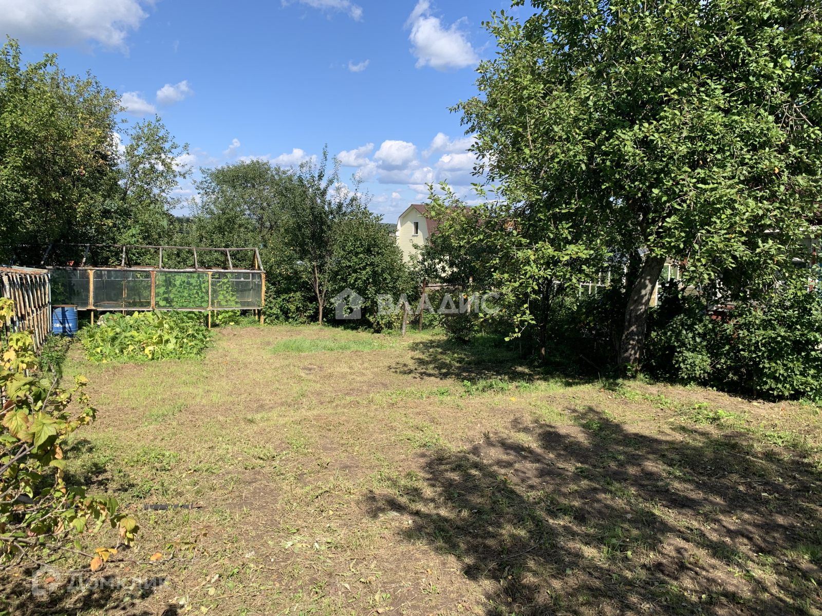 Участок ухоженный, прямоугольной формы , огорожен забором. На территории есть плодовые деревья , цветы, теплицы.