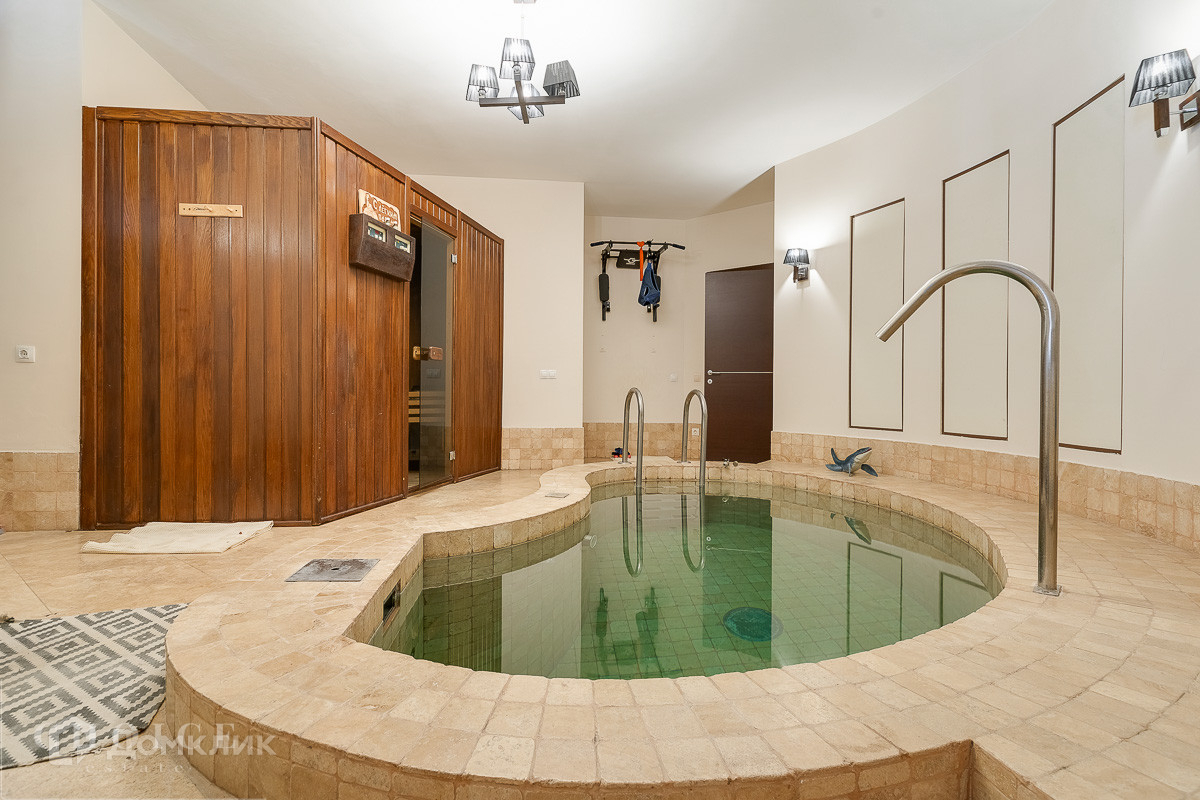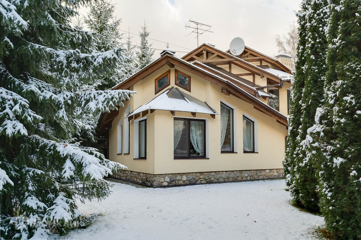 Загородный дом из кирпича общей площадью 340 м2  построен по индивидуальному проекту американского архитектора на лесном участке 12.8 соток в коттеджном посёлке "Немчиновка". В доме спланировали 3 спальни, SPA-зону с бассейном и сауной, крытую террасу с зоной барбекю, а также гостиную с камином и вторым светом. На участке расположен дом для персонала и бытовое сооружение. Выполнен ландшафтный дизайн, растут многолетние деревья, установлено уличное освещение, охранная система, автополив. Есть возможность подключения центральной канализации.