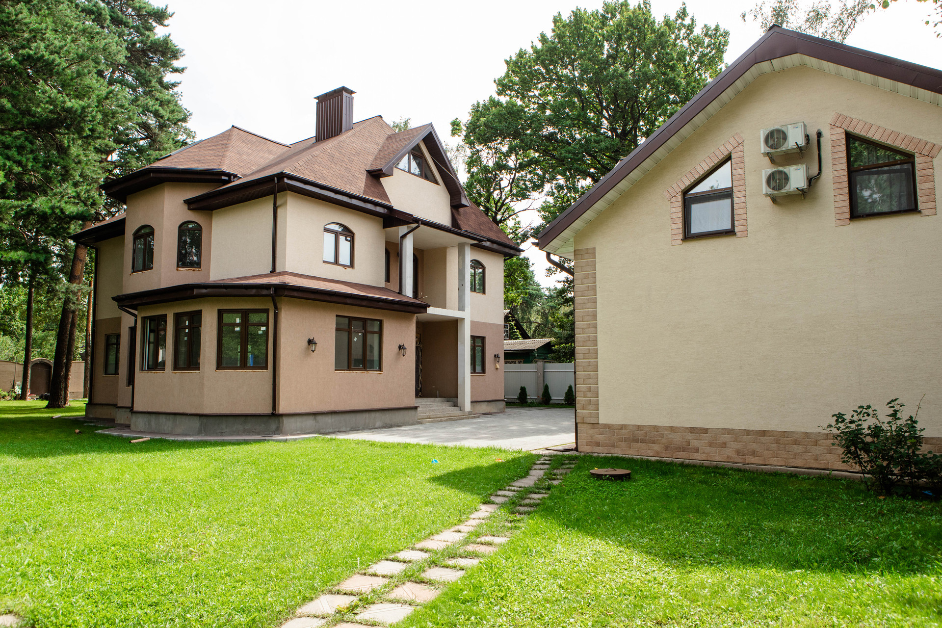 Дом малый - отделка завершена, две спальни, кухня, санузлы, идеально для родственников/прислуги/ охраны.