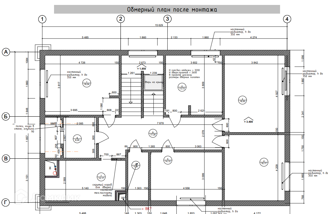 Второй этаж - 4 комнаты, гардеробная, 2 с/у (туалет, ванна).