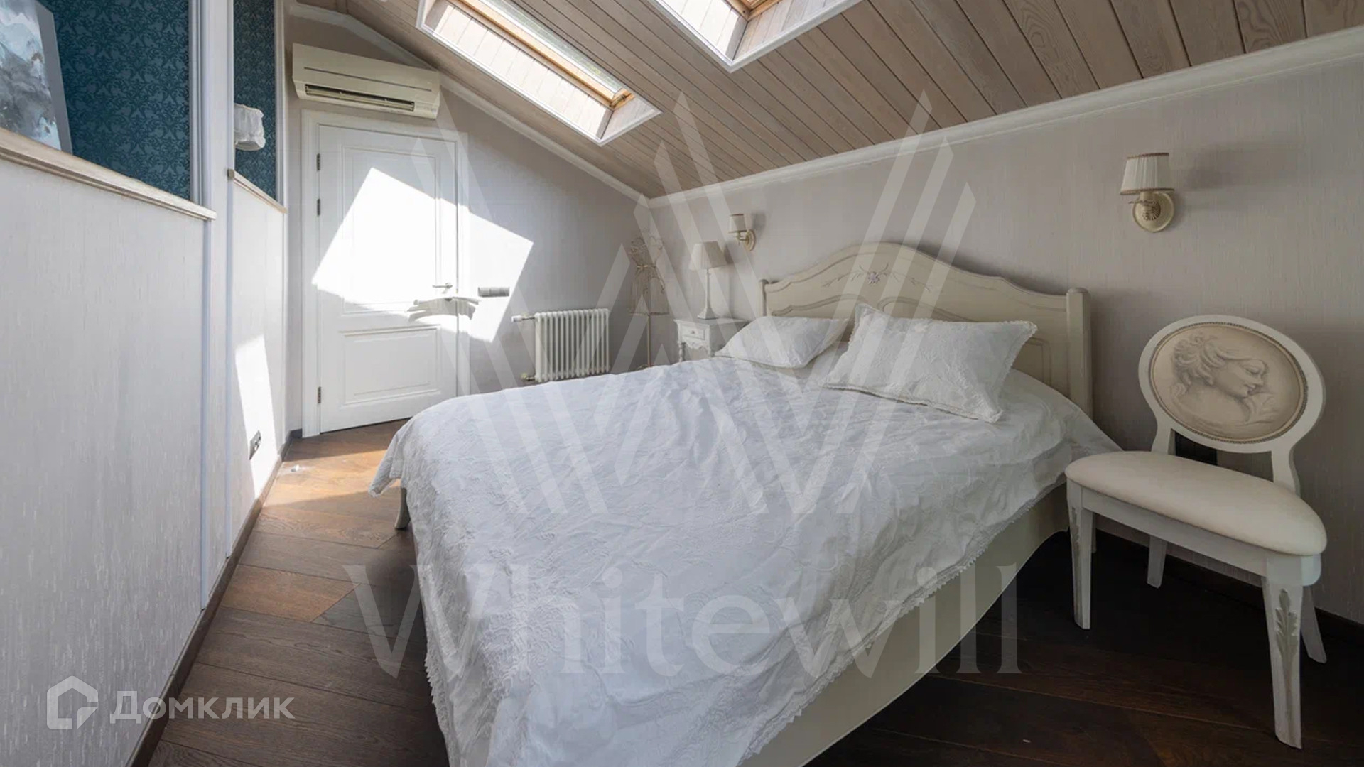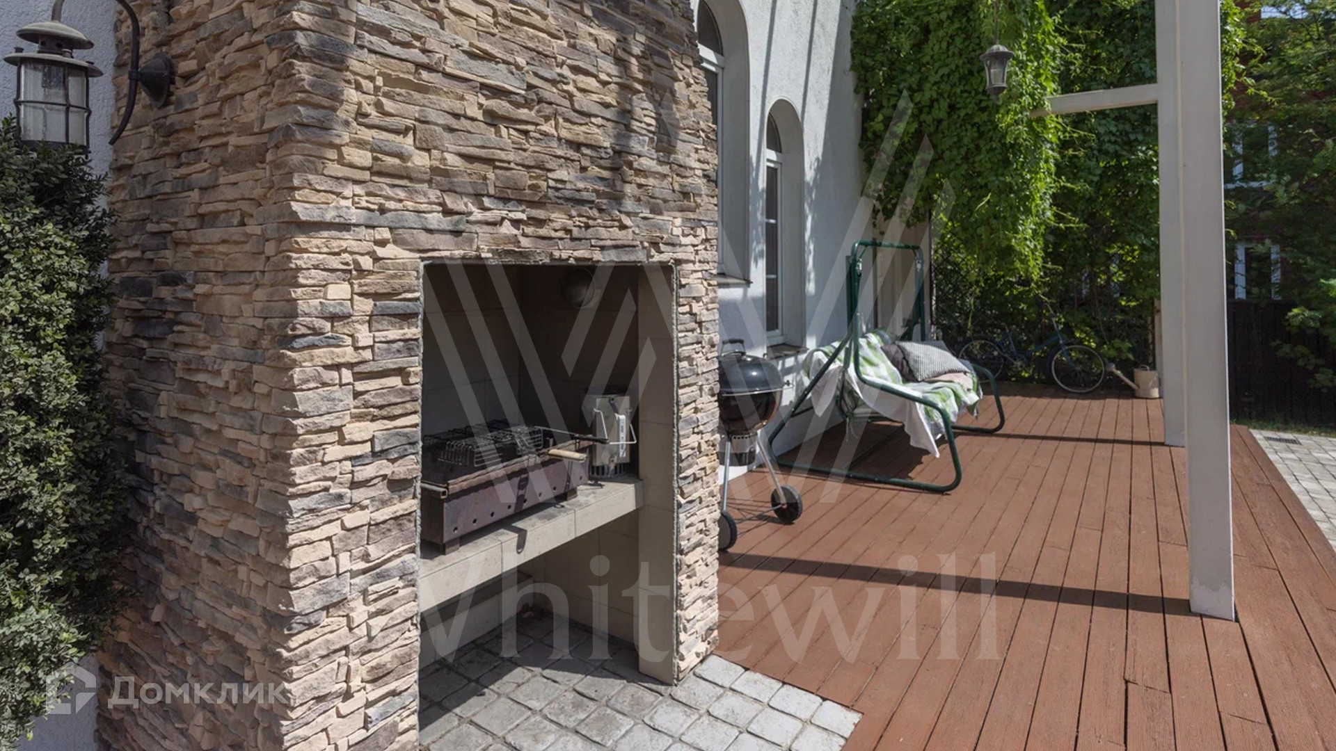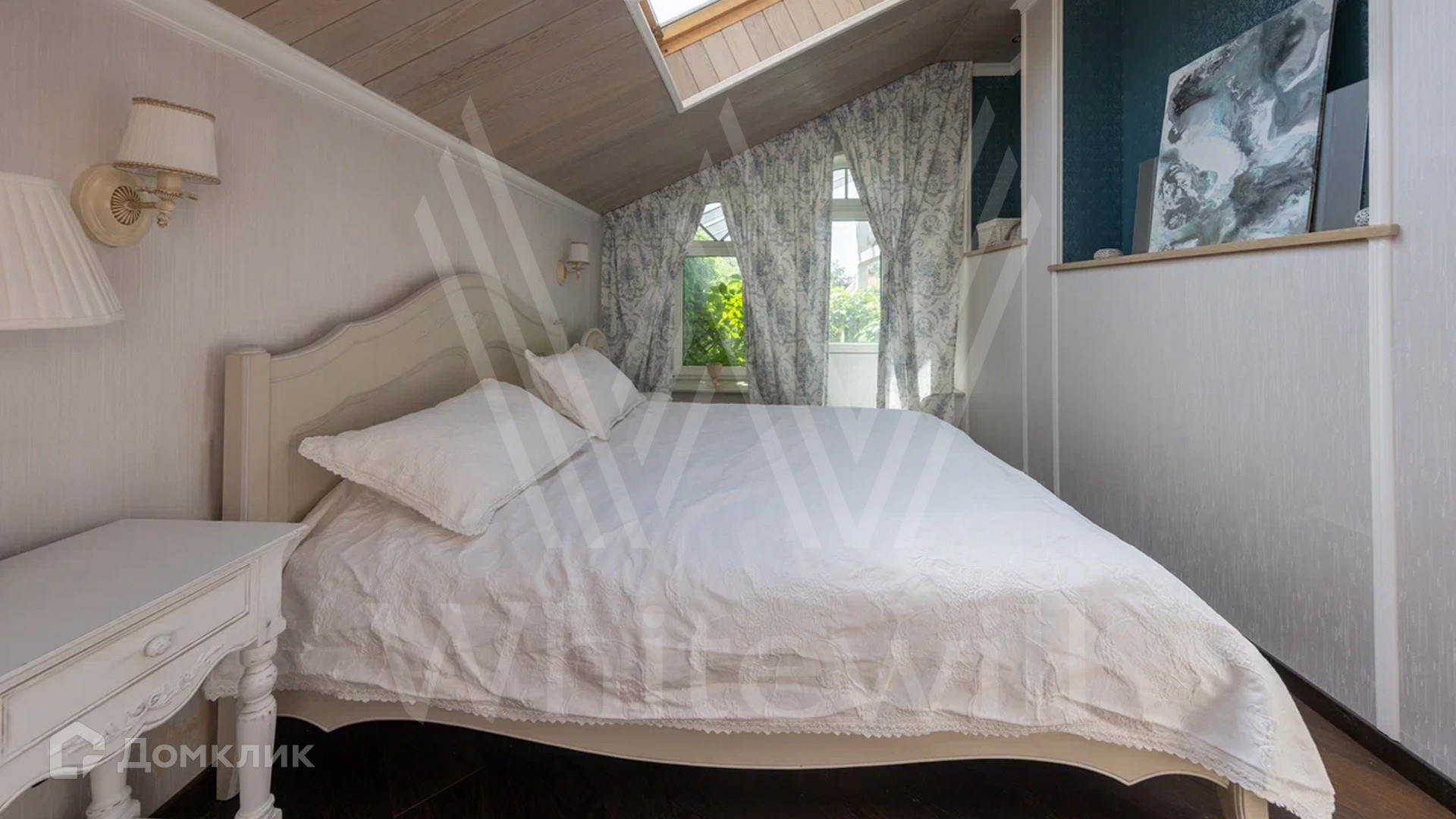 ID 12 478. Немчиновка. Загородный дом площадью 373 м² расположен на тупиковой улице, на полевом участке 12,8 соток. Здание в европейском стиле с белым фасадом и деревянными элементами утопает в зелени. Внутри выполнена дизайнерская отделка — гостиная с камином, двухсветный обеденный зал с потолком 7 метров и кухня выдержаны в стиле лофт, спальни на втором этаже стремятся к скандинавскому минимализму. Баня разместилась внутри дома.