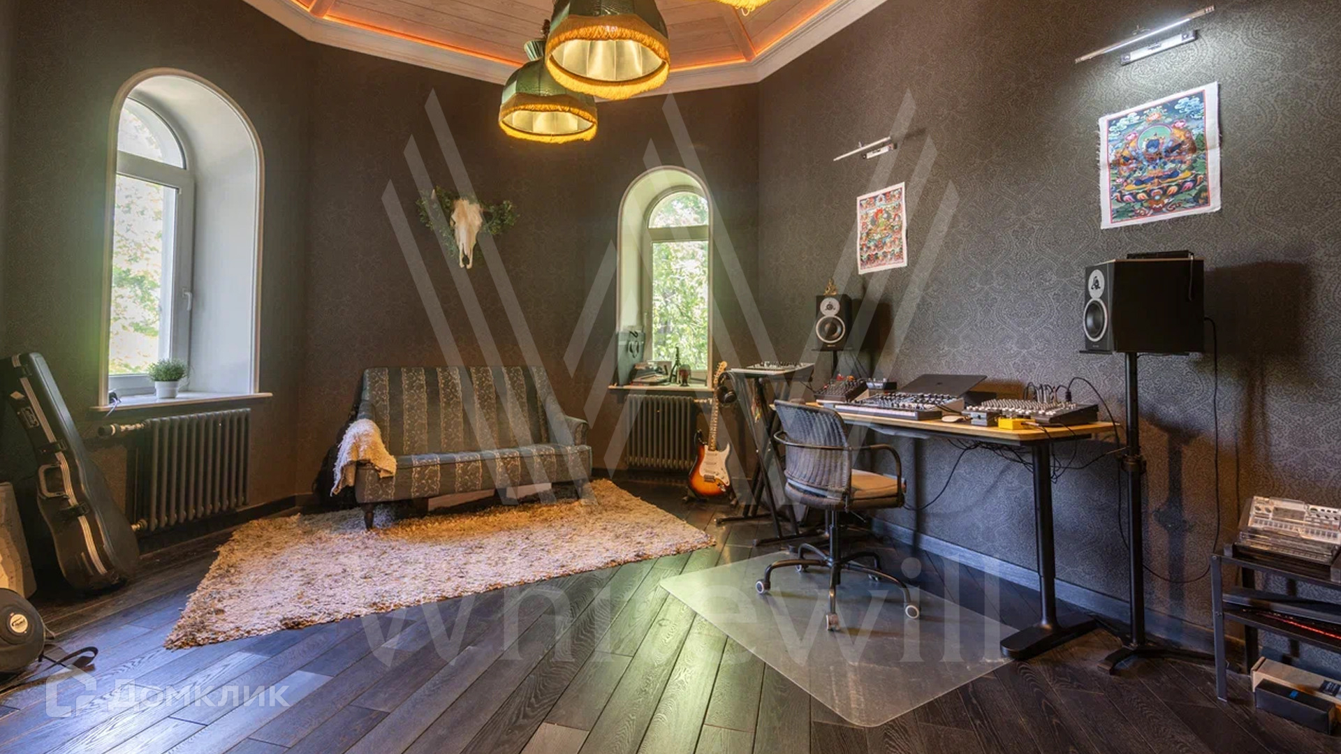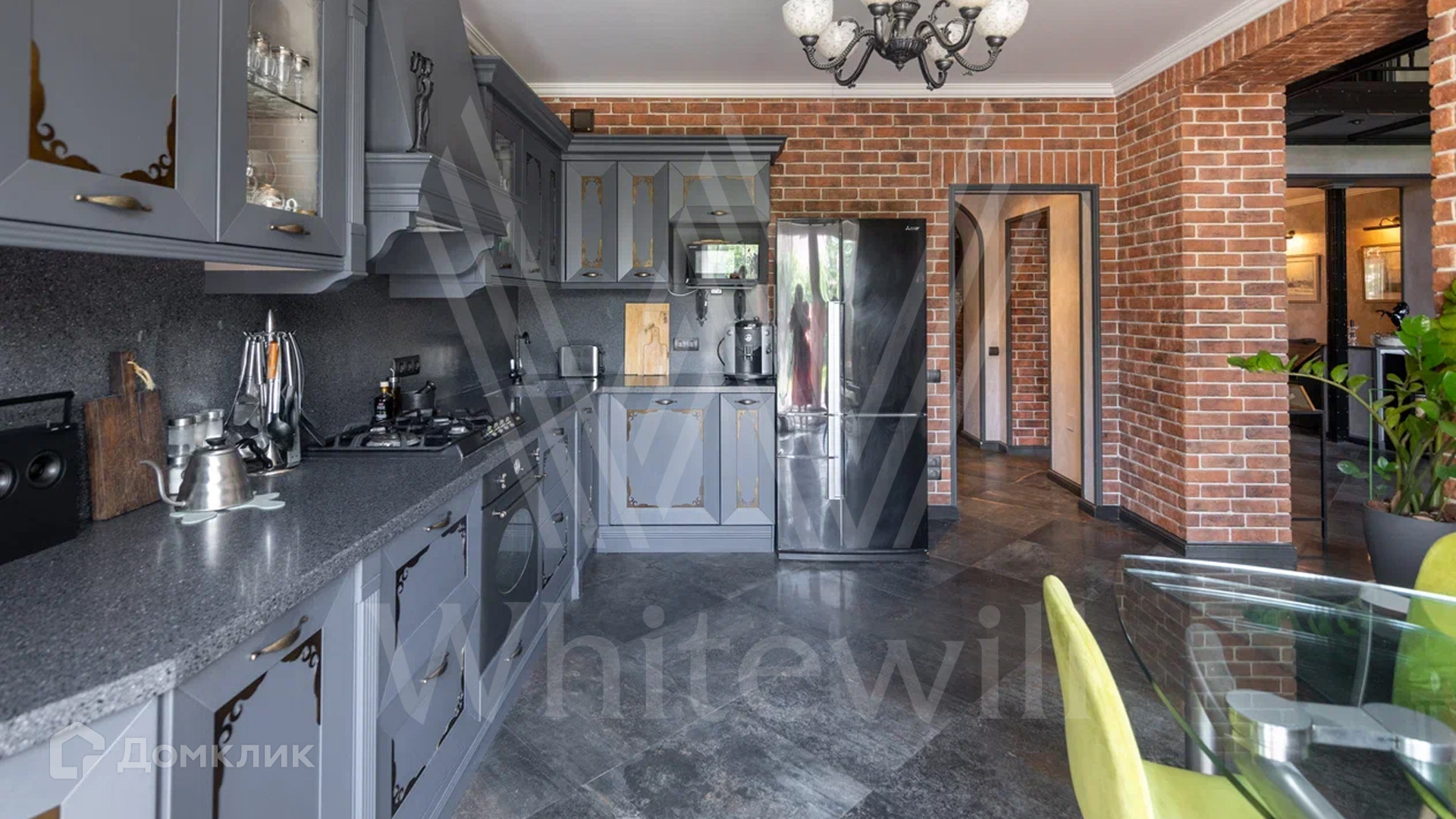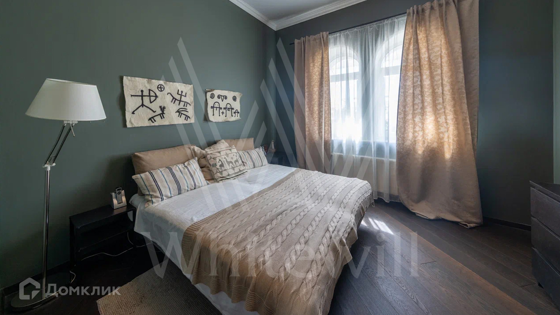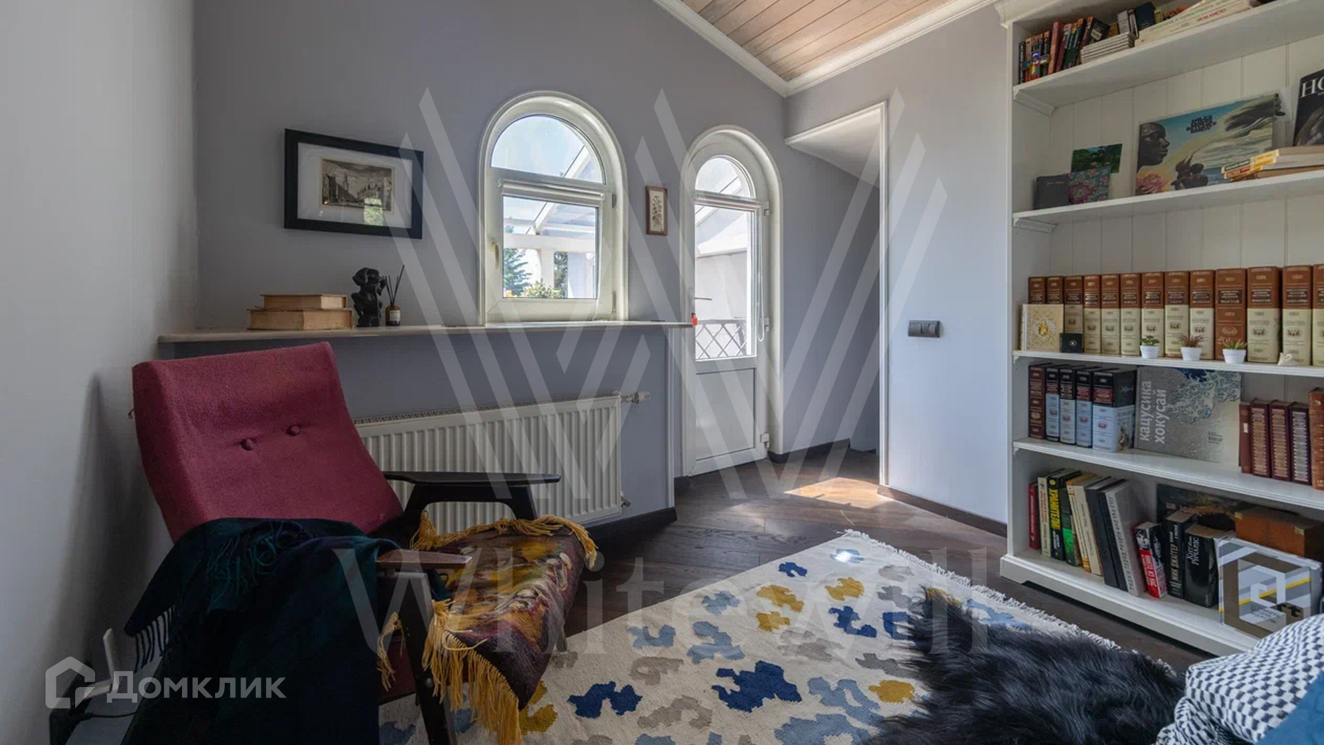 ID 12 478. Немчиновка. Загородный дом площадью 373 м² расположен на тупиковой улице, на полевом участке 12,8 соток. Здание в европейском стиле с белым фасадом и деревянными элементами утопает в зелени. Внутри выполнена дизайнерская отделка — гостиная с камином, двухсветный обеденный зал с потолком 7 метров и кухня выдержаны в стиле лофт, спальни на втором этаже стремятся к скандинавскому минимализму. Баня разместилась внутри дома.