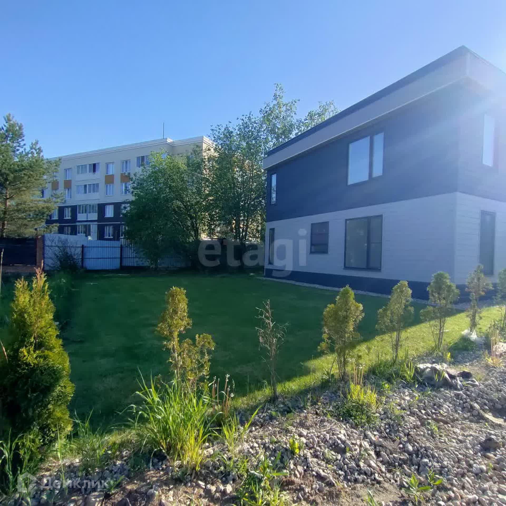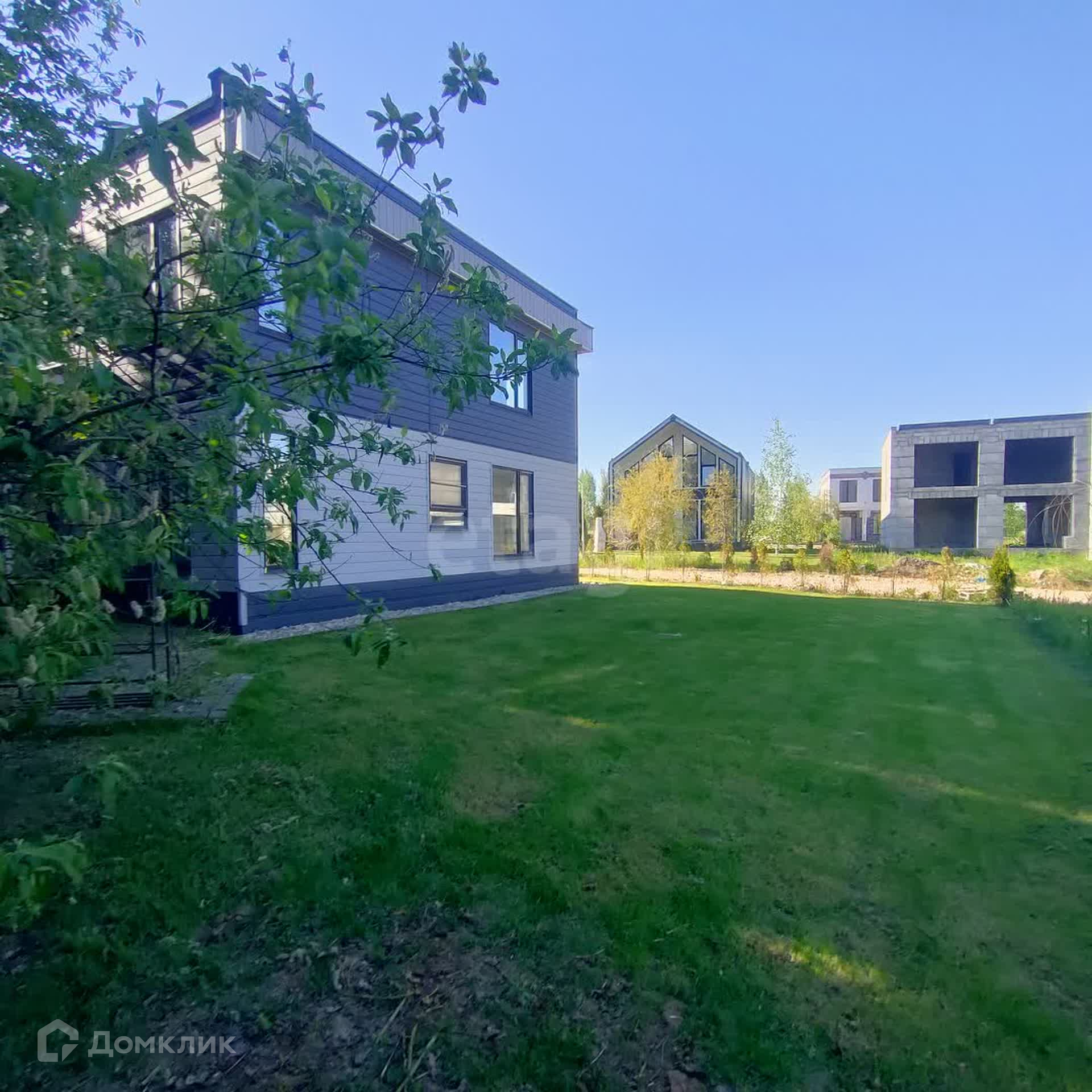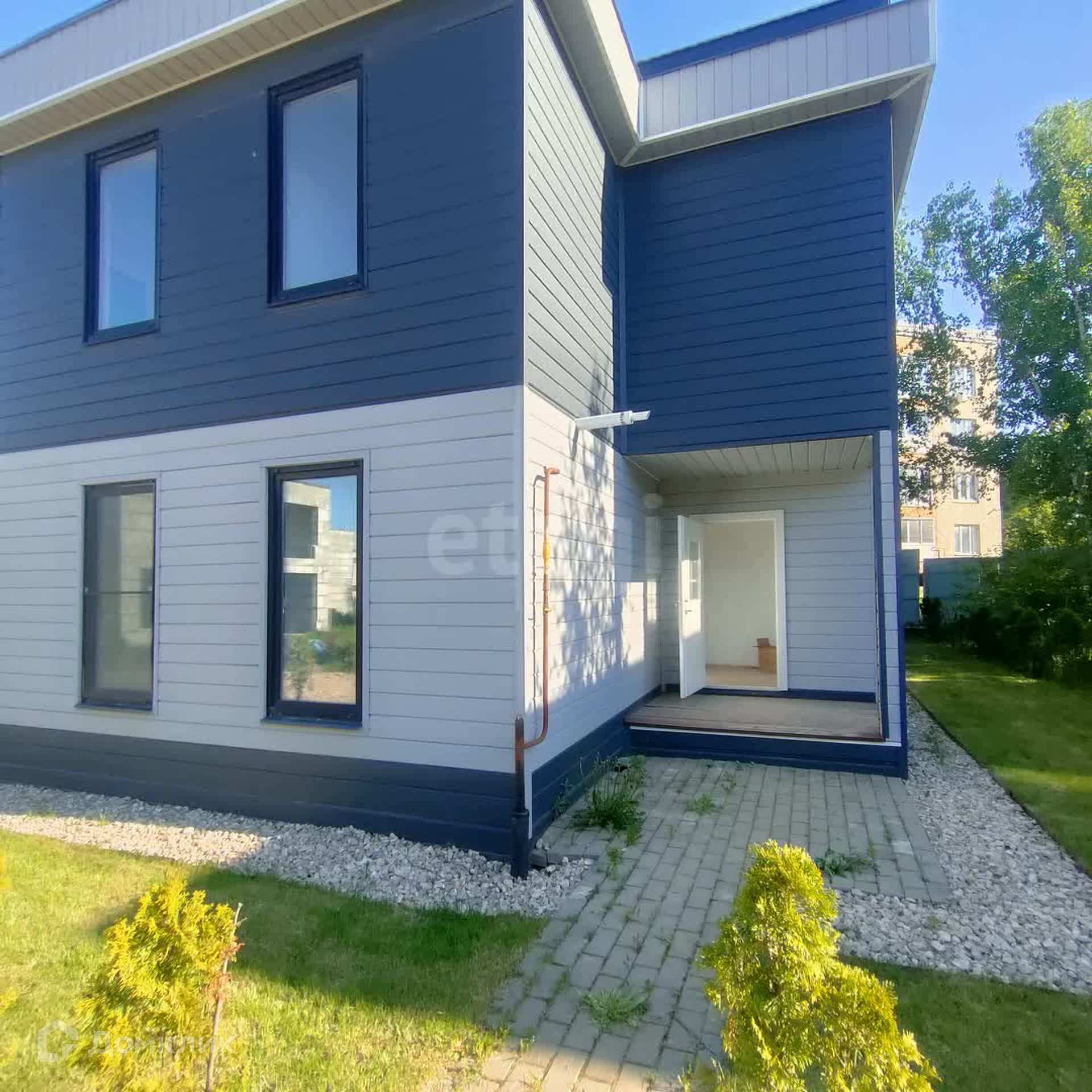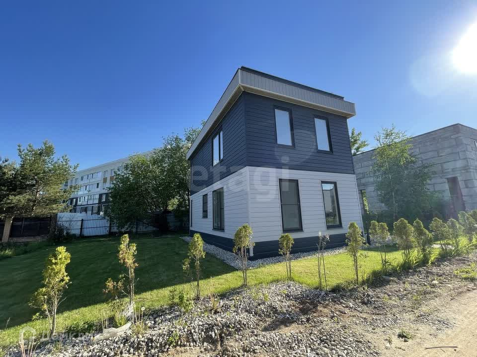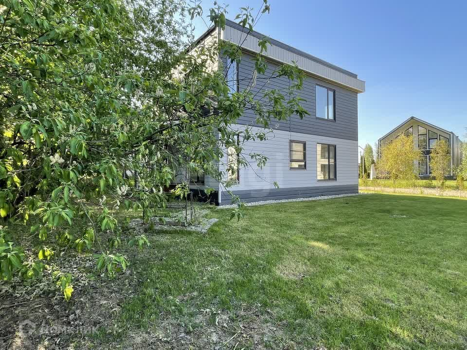 Дом продается в формате white box, что позволяет новому владельцу воплотить свои дизайнерские идеи. Придомовая территория благоустроена: газон, дорожки, парковка на две машины. В поселке предусмотрено все для комфортного проживания: детская площадка, футбольное поле, выход в лес и на речку.