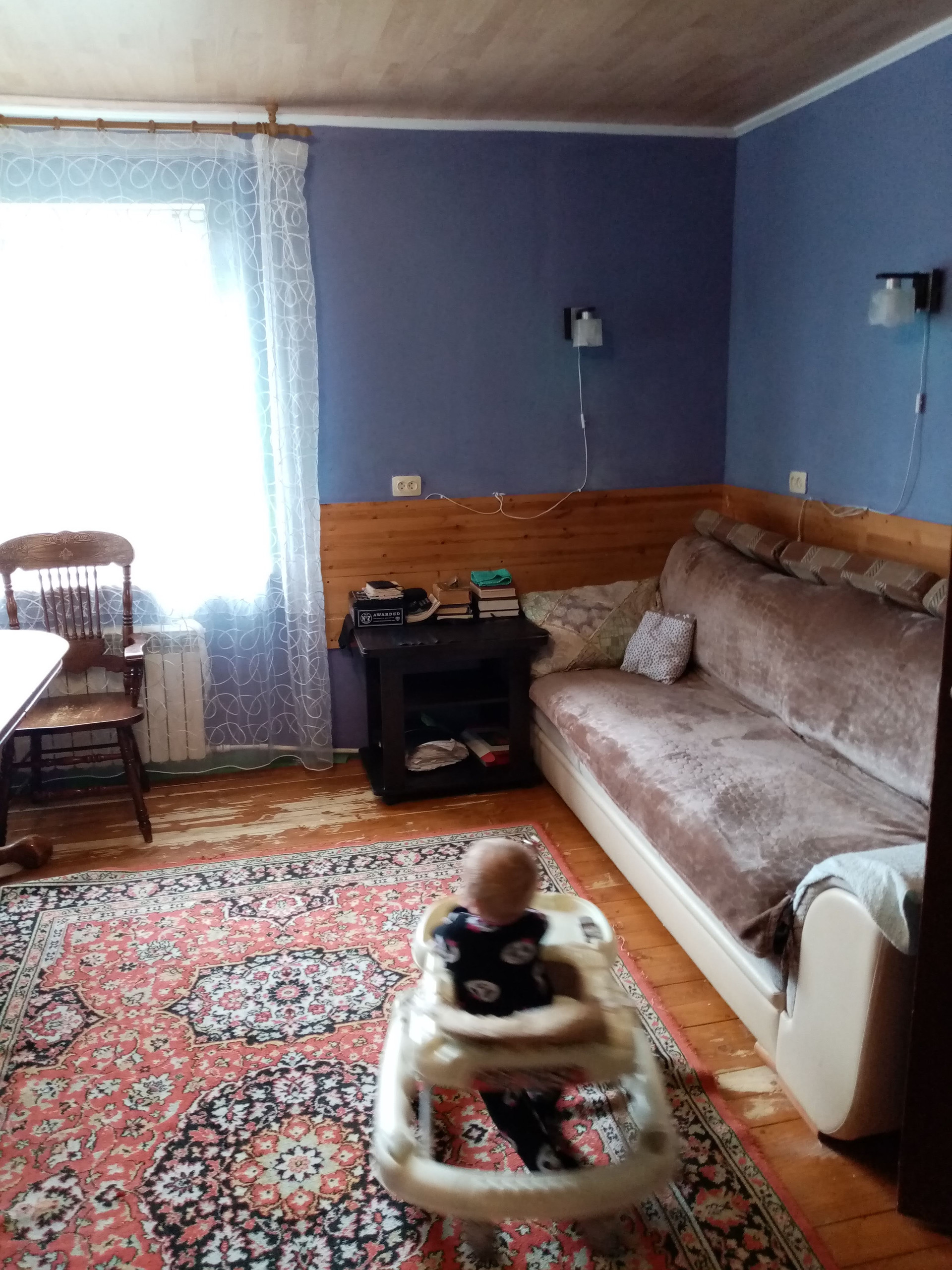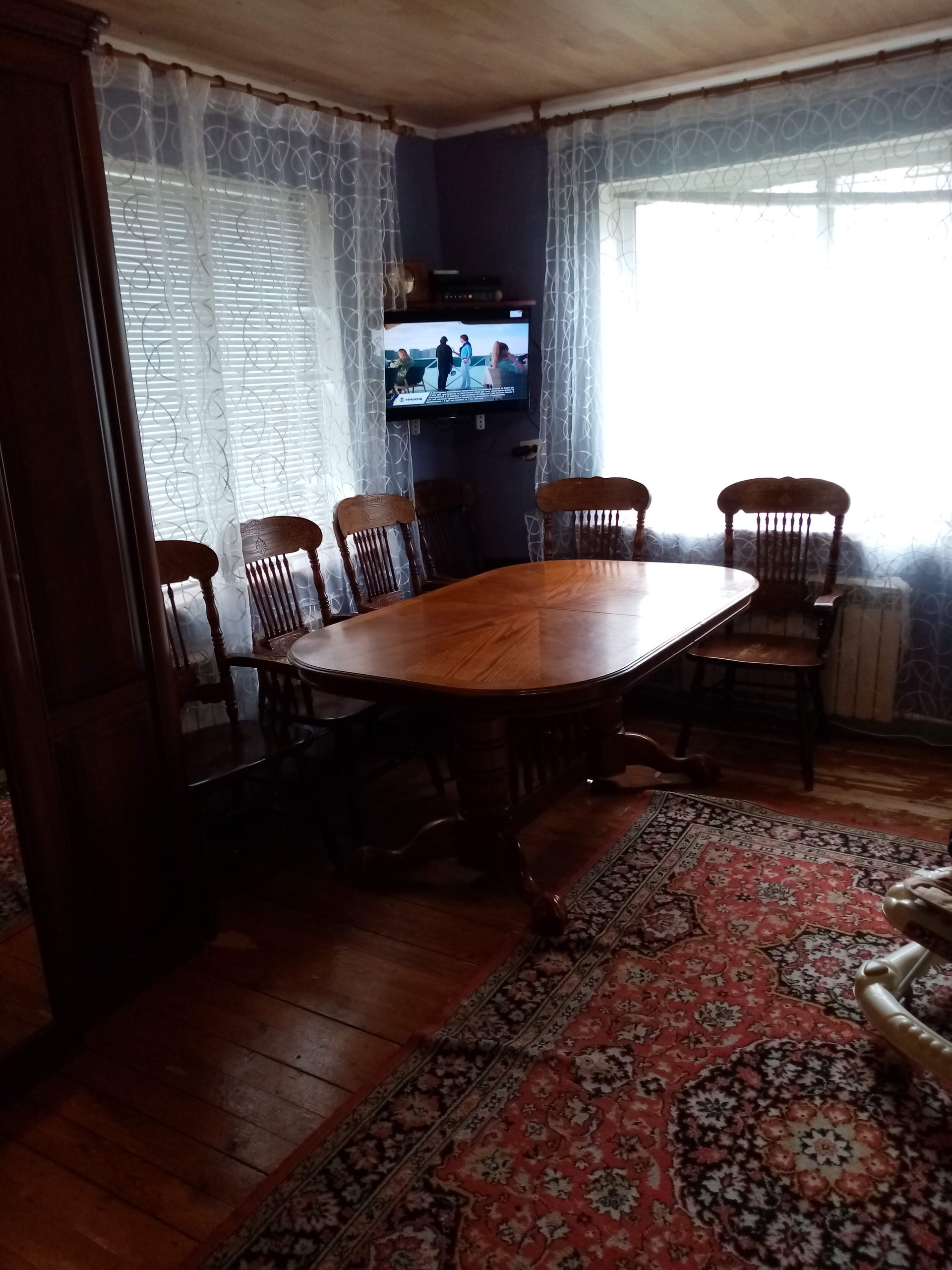 Дом с виду не кажется таким большим как внутри. Достаточно просторные комнаты, на 1-м этаже расположено: