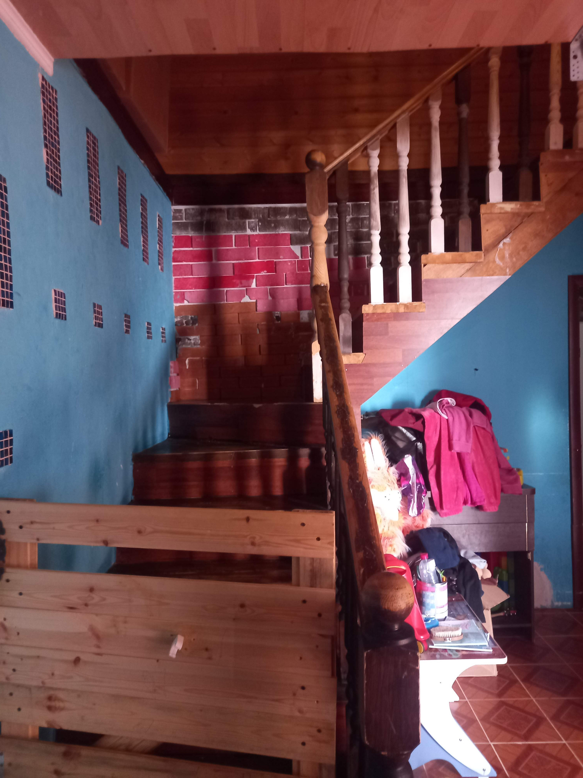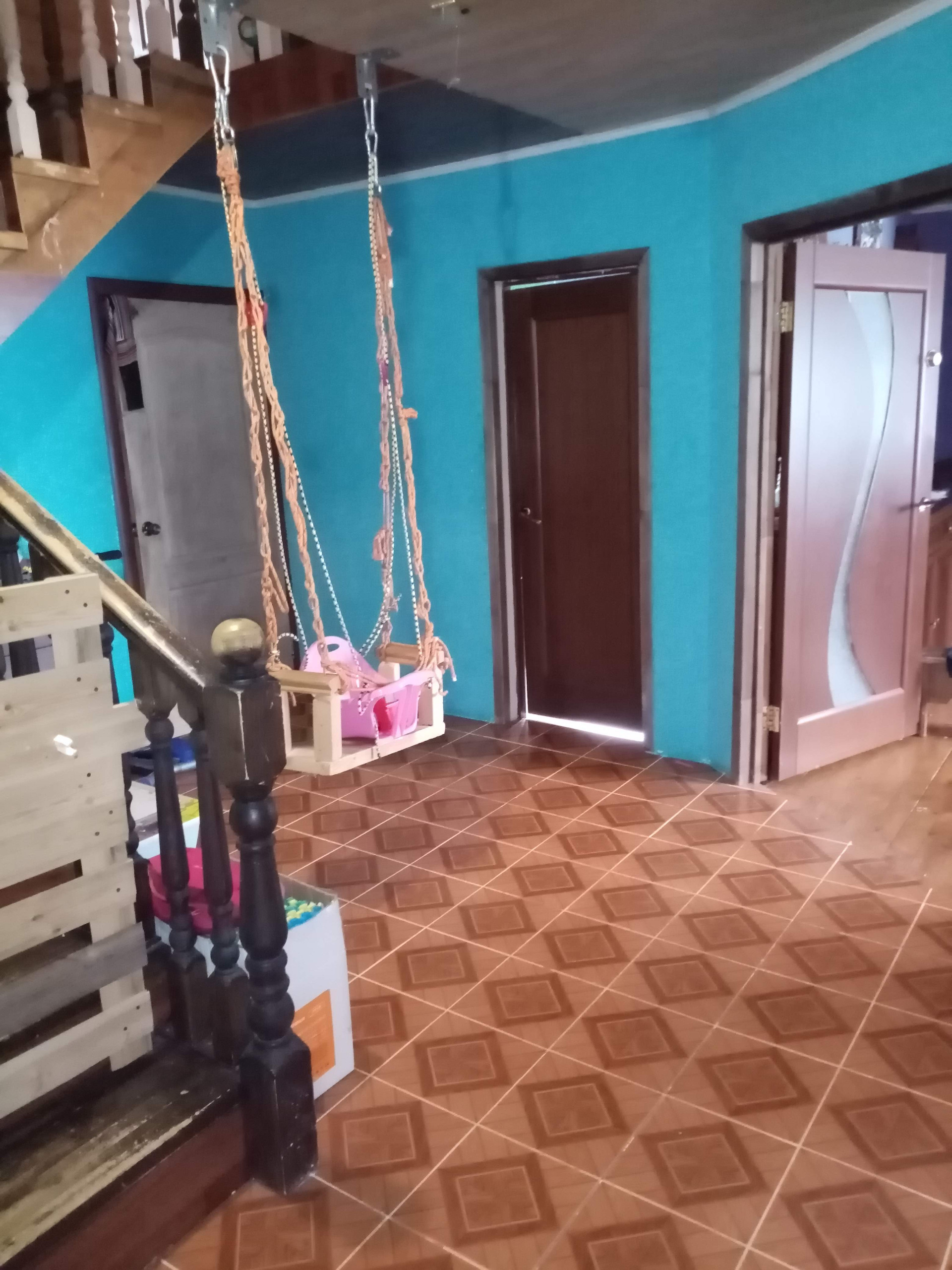 - веранда, санузел + отдельно ванна с санузлом, прихожая, комната - личный кабинет + ещё 3 комнаты и кухня. Под лестницей кладовая. На 2ом этаже 2 огромные комнаты. И по двум сторонам огромные кладовки, можно как закрутки хранить так и любые другие вещи.