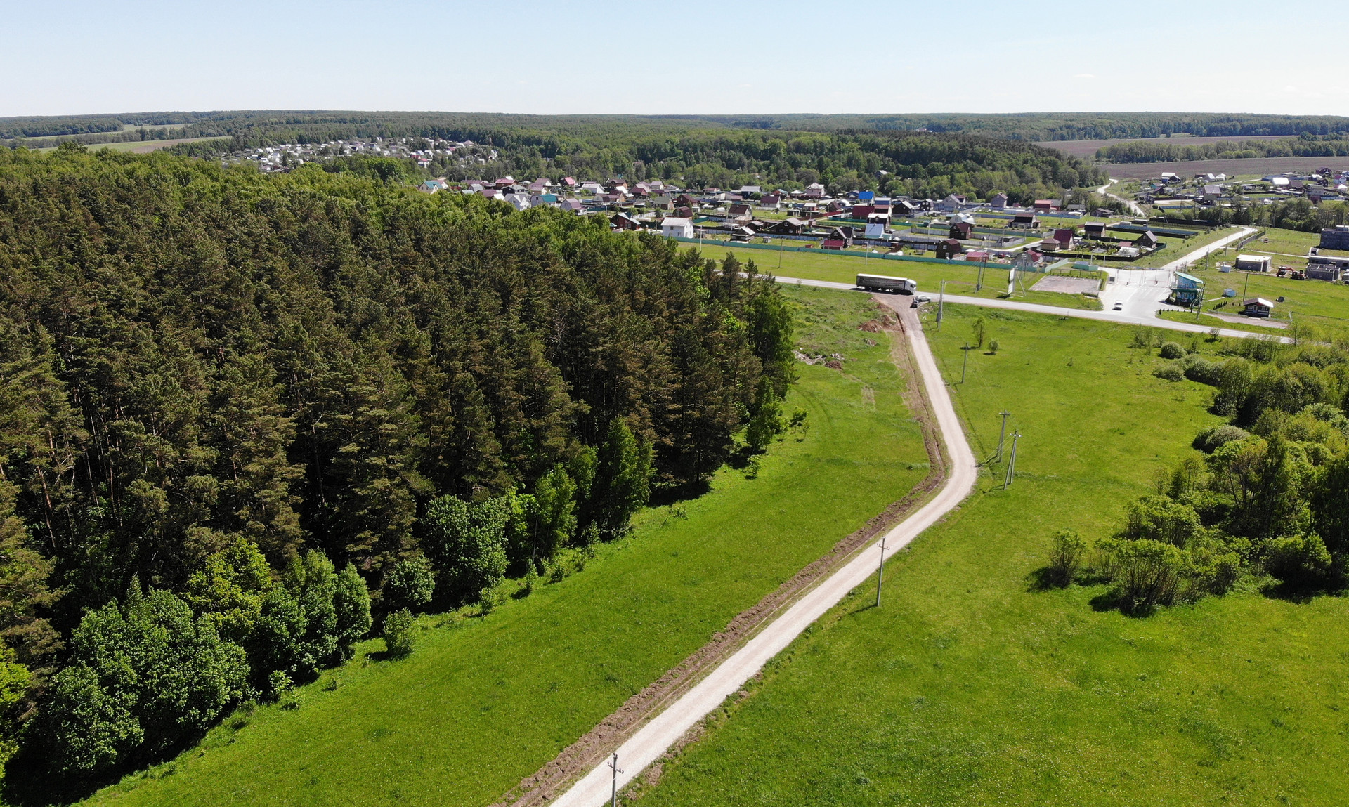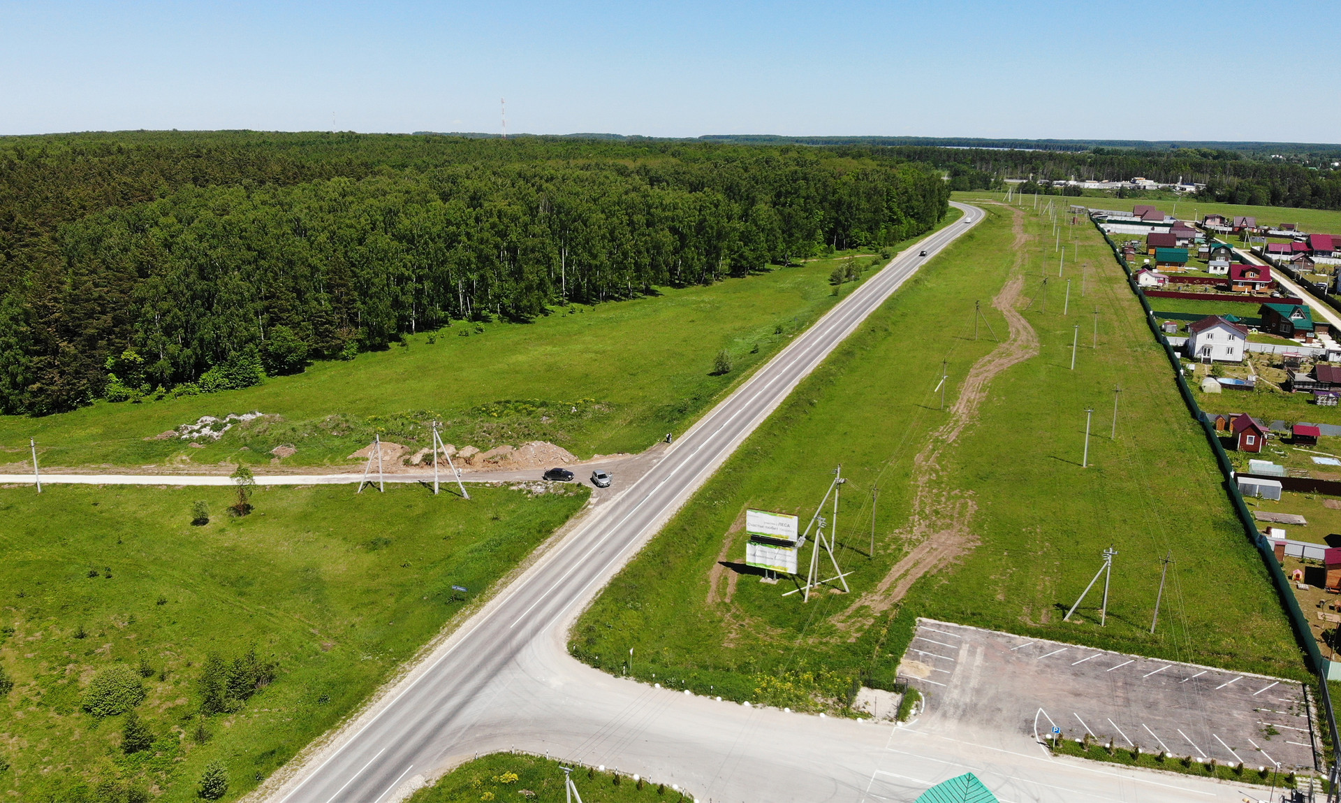 К деревне ведет удобный асфальтовый подъезд из Москвы по трассе М2, дорога займет всего 57 минут на автомобиле по Симферопольскому шоссе. Внутри деревни все дороги выполнены с широким качественным щебневым покрытием, к участку предусмотрено подведение электролинии (15 кВт на 3 фазы).