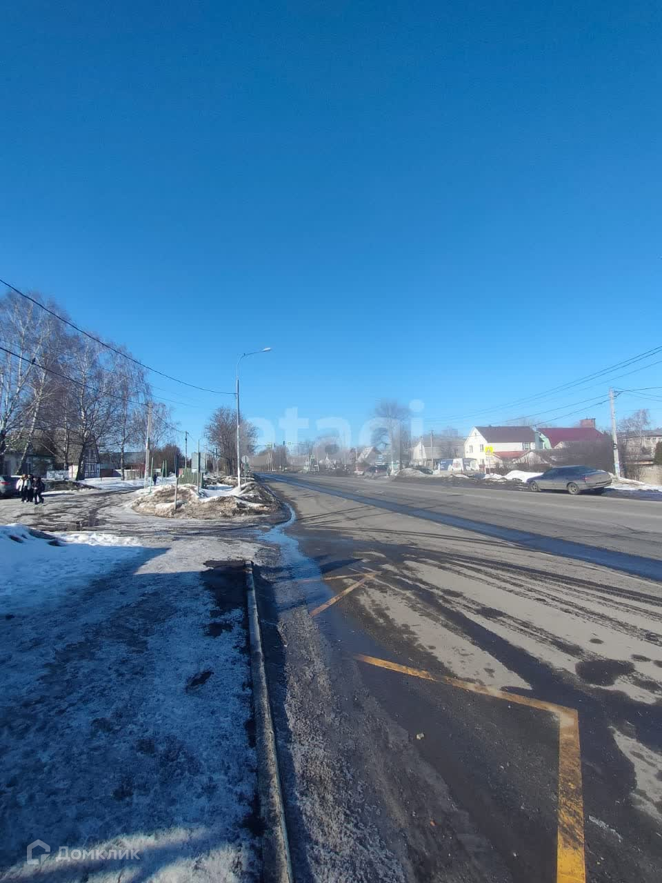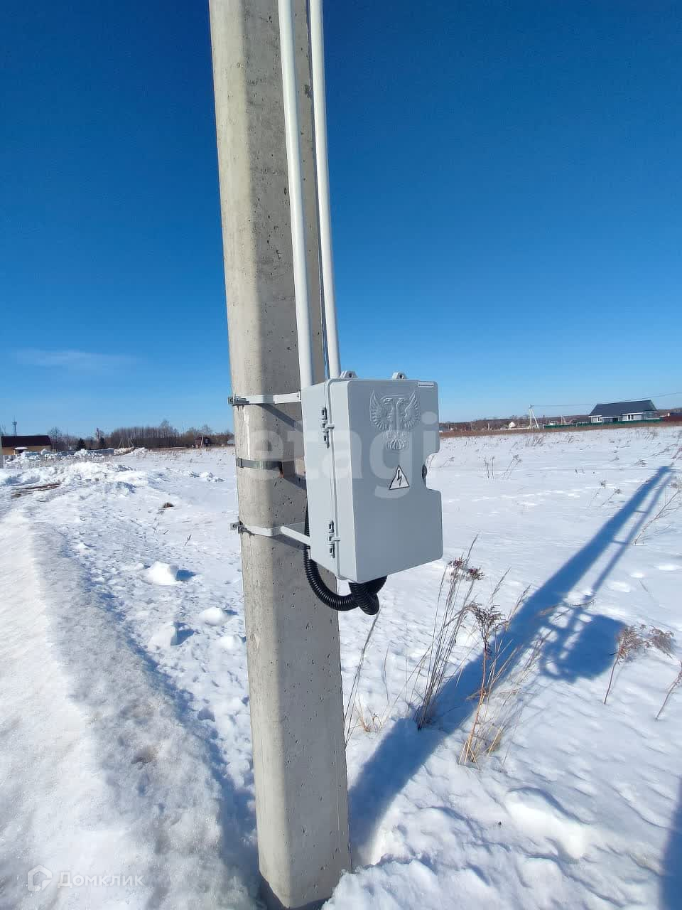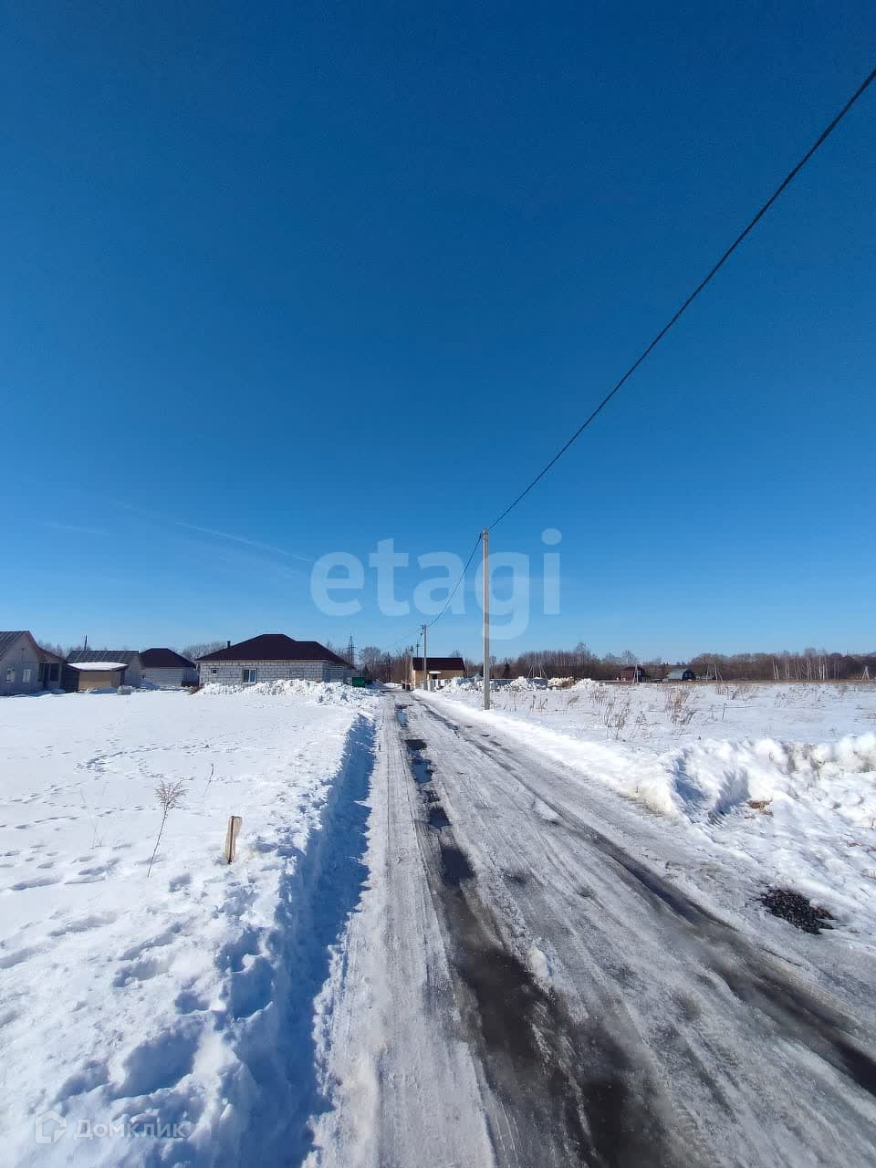 Большой, свободный участок прямоугольной формы с удобным заездом. По улице проходит газ, электрический столб по границе с участком.