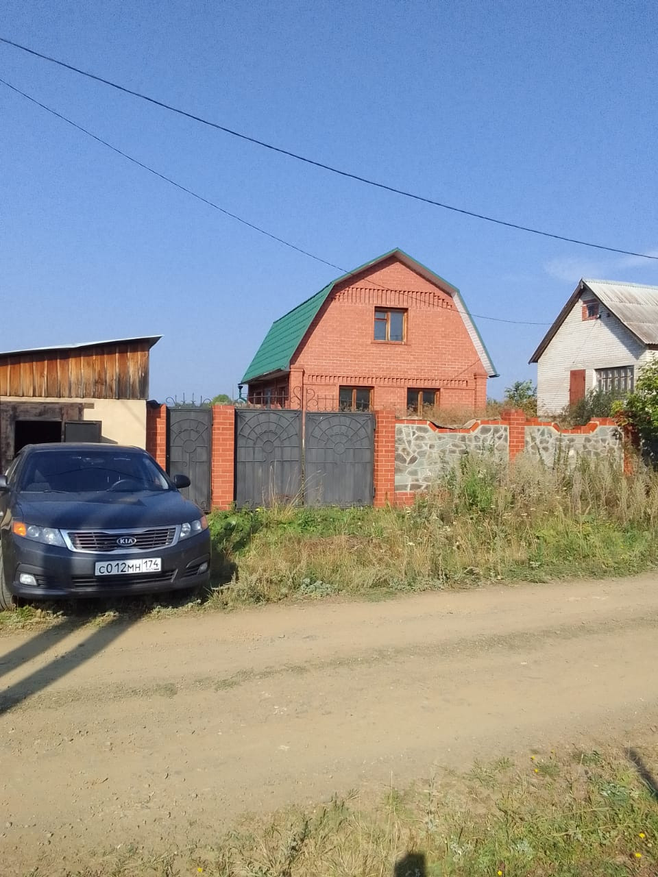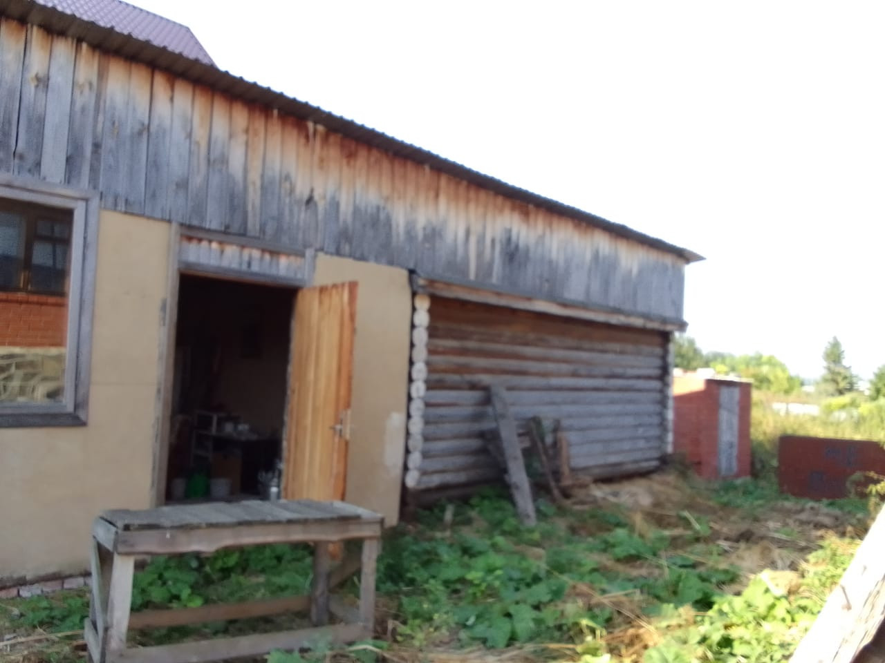 На территории объединенные в одно капитальное строение гараж (4.15Х7 метров) летняя кухня с зоной барбекю (4.15Х7 метров) и баня 6х4 метра. Предбанник полностью готов к эксплуатации, печь в парилке отличная. В парной требуется внутренняя отделка. Воды нет. Туалет из кирпича на улице.
