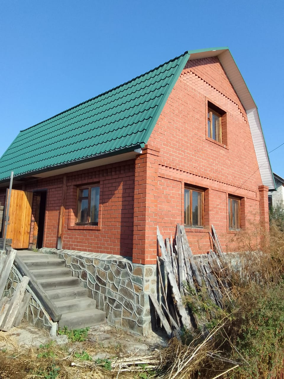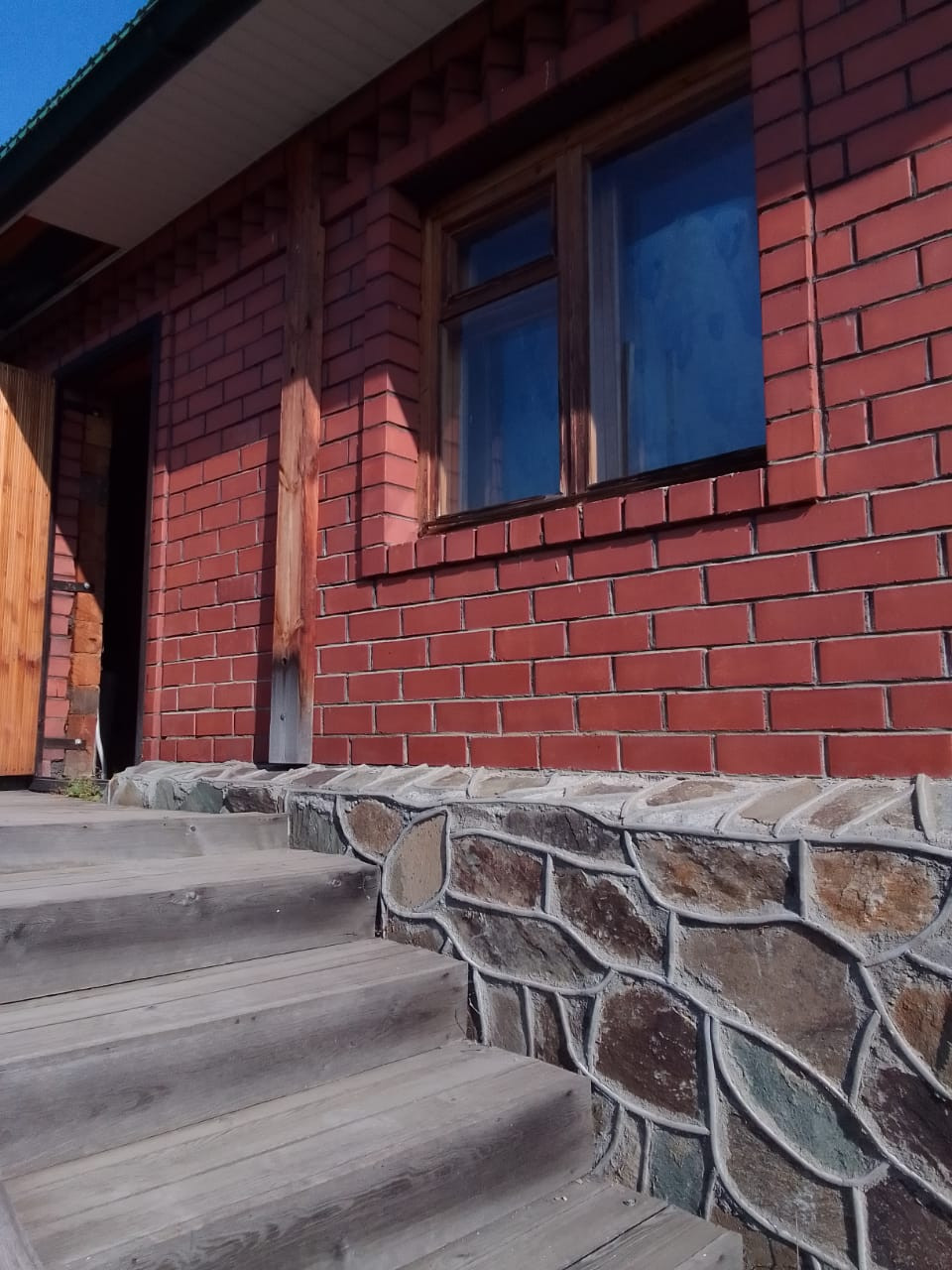 Дом из бруса, обложен кирпичем. Требуется только внутренняя отдела. Все сложные и затратные работы уже произведены, есть электричество. В доме легко дышать. Новому владельцу останется дубовая лестница, которую нужно только смонтировать. Подвал полноценный глубиной 2 метра по всему периметру дома.