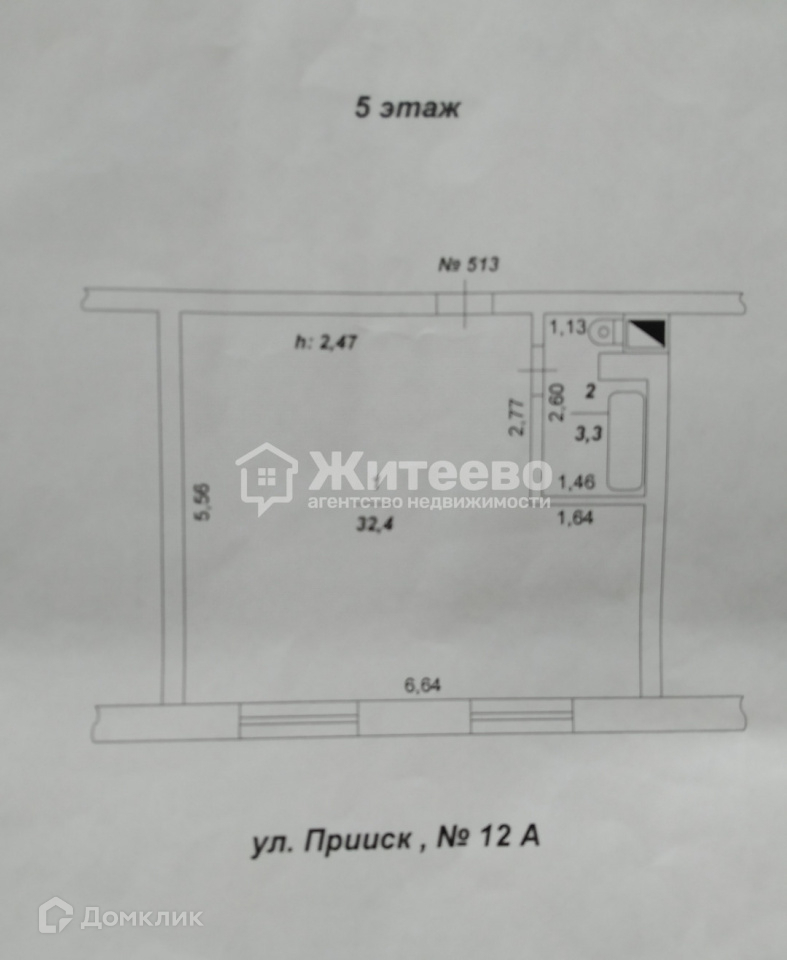 Квартира студия, 35.4 м2, этаж 5 / 6, на продажу в селе Непряхино, улица Прииск, 12А