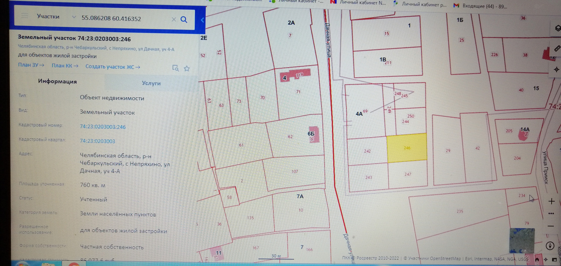 Участок под ИЖС, 7.6 сот. на продажу в селе Непряхино, Дачная улица, 4А