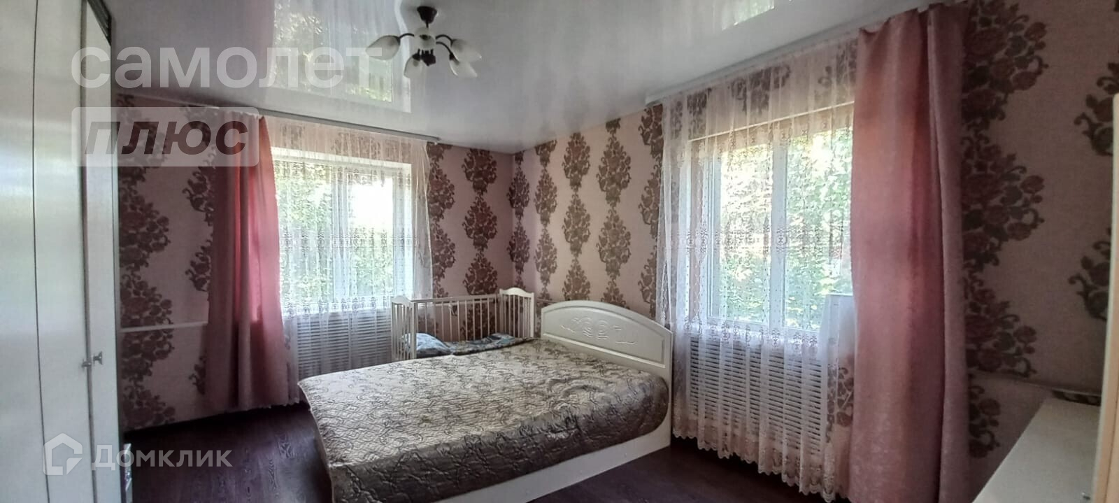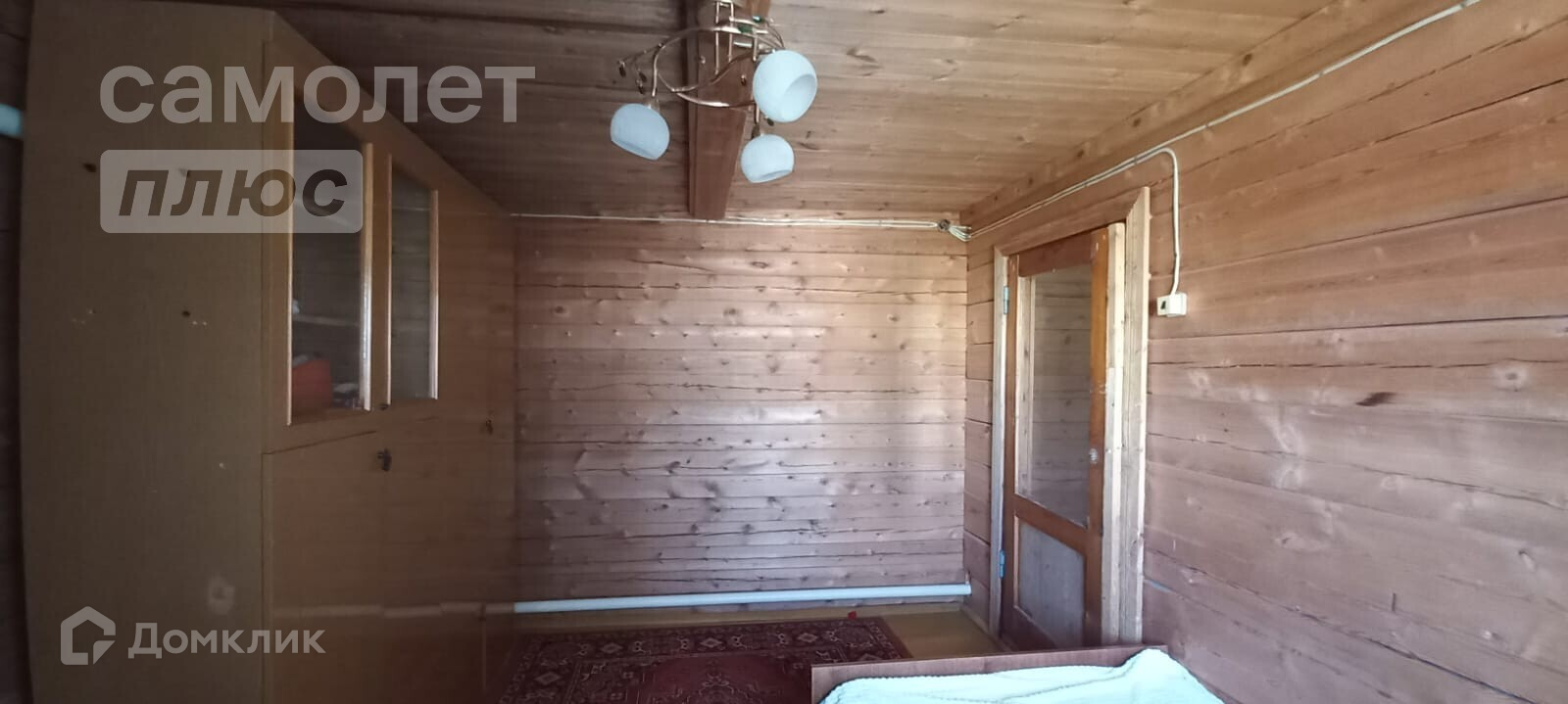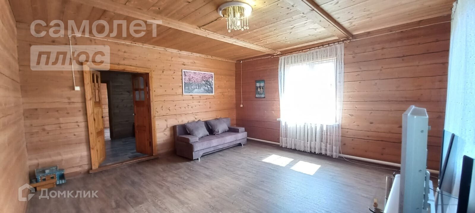 - потолок в спальне и на кухне натяжной, в остальных комнатах под дерево,