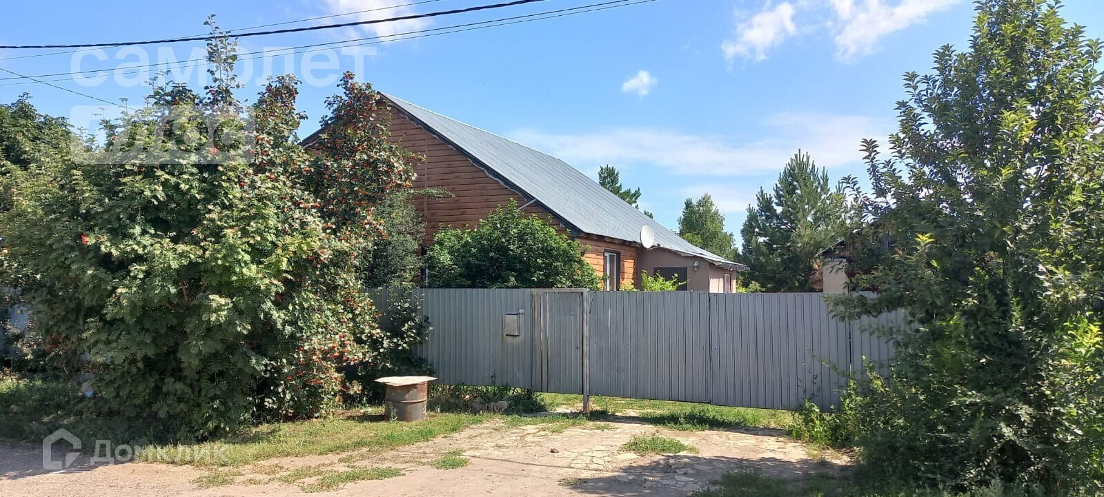Придомовая территория вымощена из камня, дорожки во дворе забетонированы. Фасадная часть огорожена забором из профлиста.