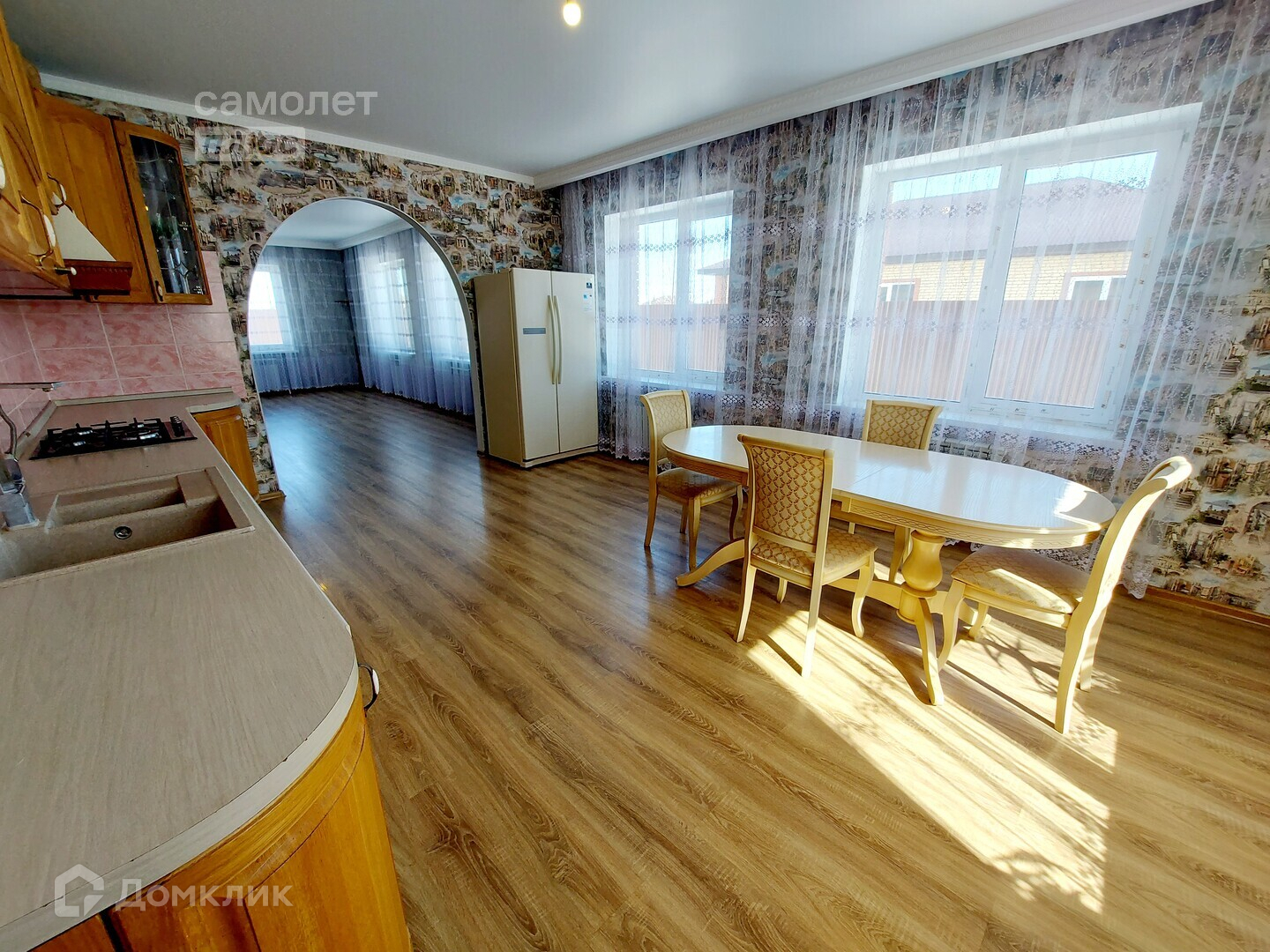 Просторный одноэтажный дом площадью 152 кв.м., в котором располагаются гостиная, кухня, санузел, три просторные светлые комнаты в одной из которой свой санузел и гардеробная.