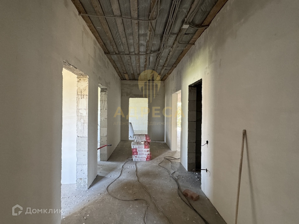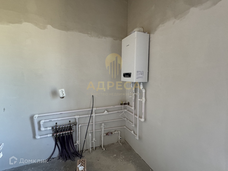 Предчистовая отделка, подведен газ, установлен двухконтурный газовый котел, вода, канализация - центральные, разведены по дому все канализационные и водопроводные трубы, электрика, отопление, сделана стяжка пола, стены отштукатурены под обои.
