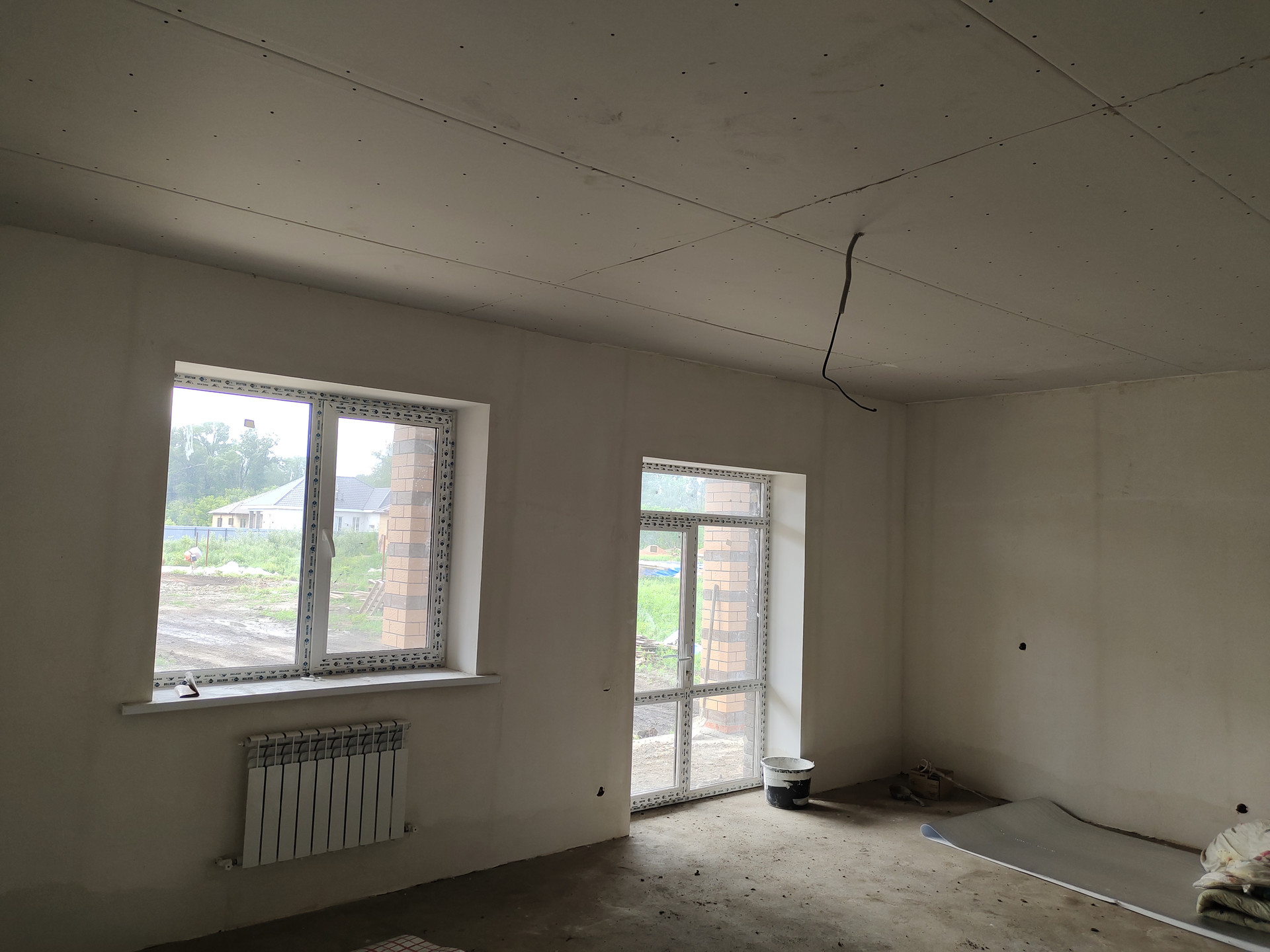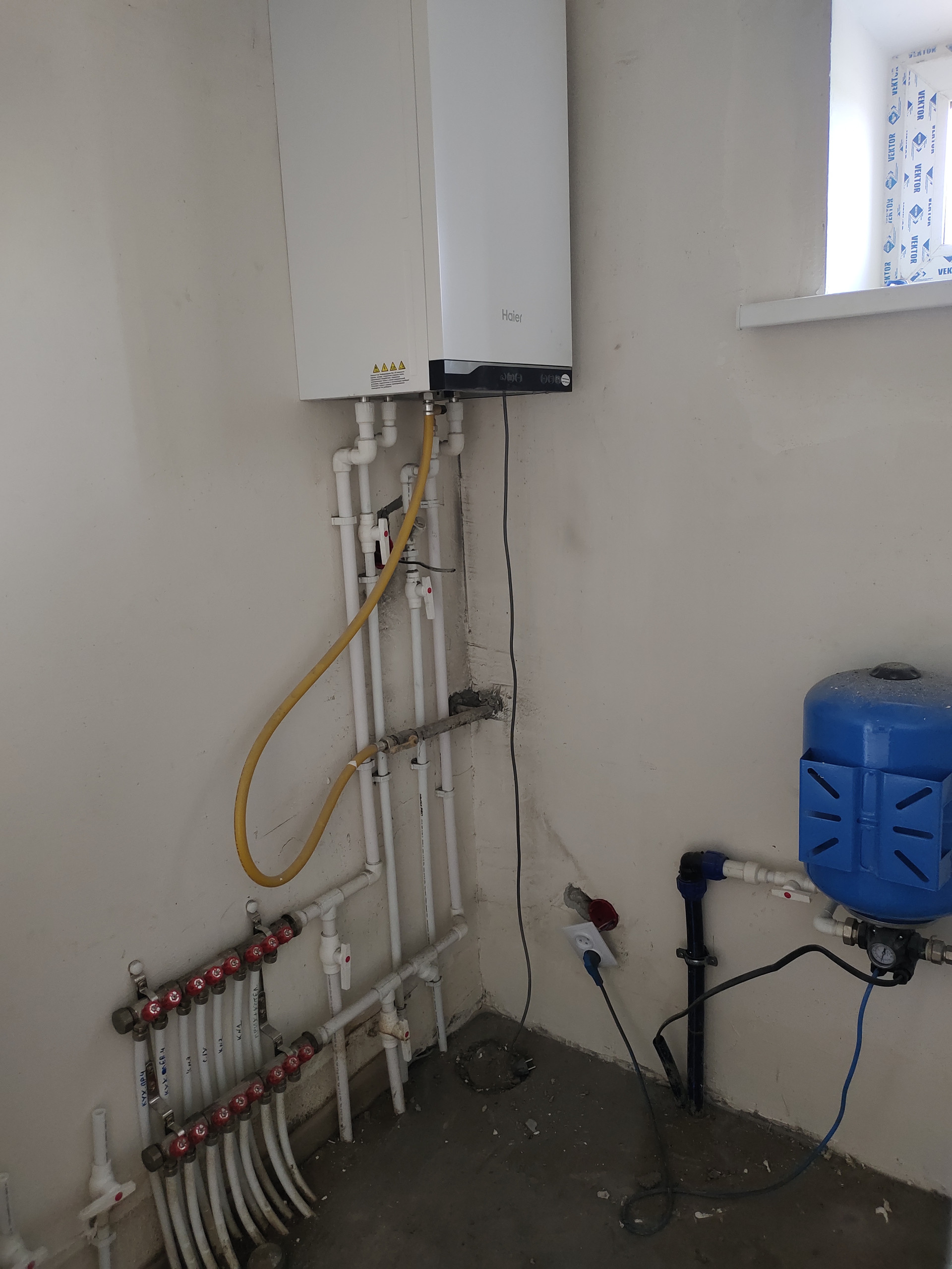 По площади всего дома уложен теплый пол, стяжка. Газовый котел отопления Haier, рассчитанный на 240 КВ м. Предчистовая отделка, во всех комнатах выведены и установлены радиаторы, электрика, скважина с глубинным насосом, септик на 3 кольца, пластиковые окна,  качественная входная дверь.
