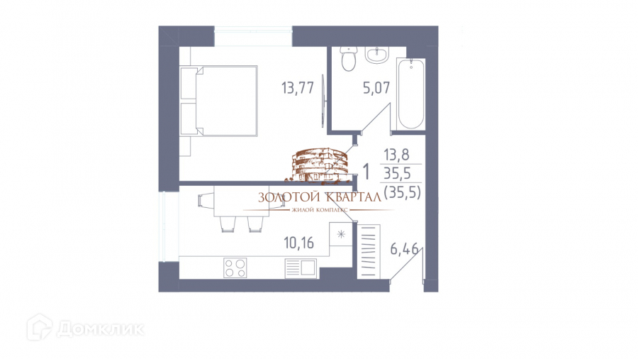 Общая площадь 35.5 м2