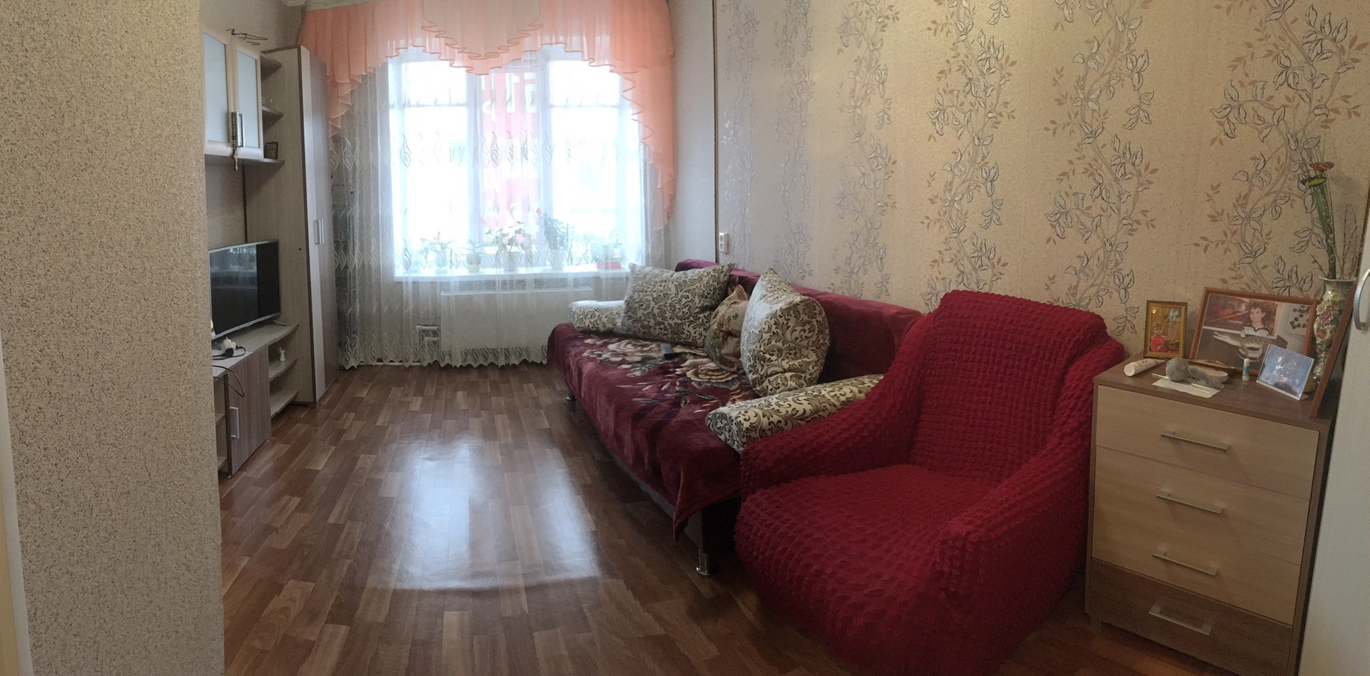 Квартира состоит из большой вместительной кухни, зал прямоугольной формы, совмещённый санузел и коридор. Окна квартиры выходят на улицу. Ремонт косметический.