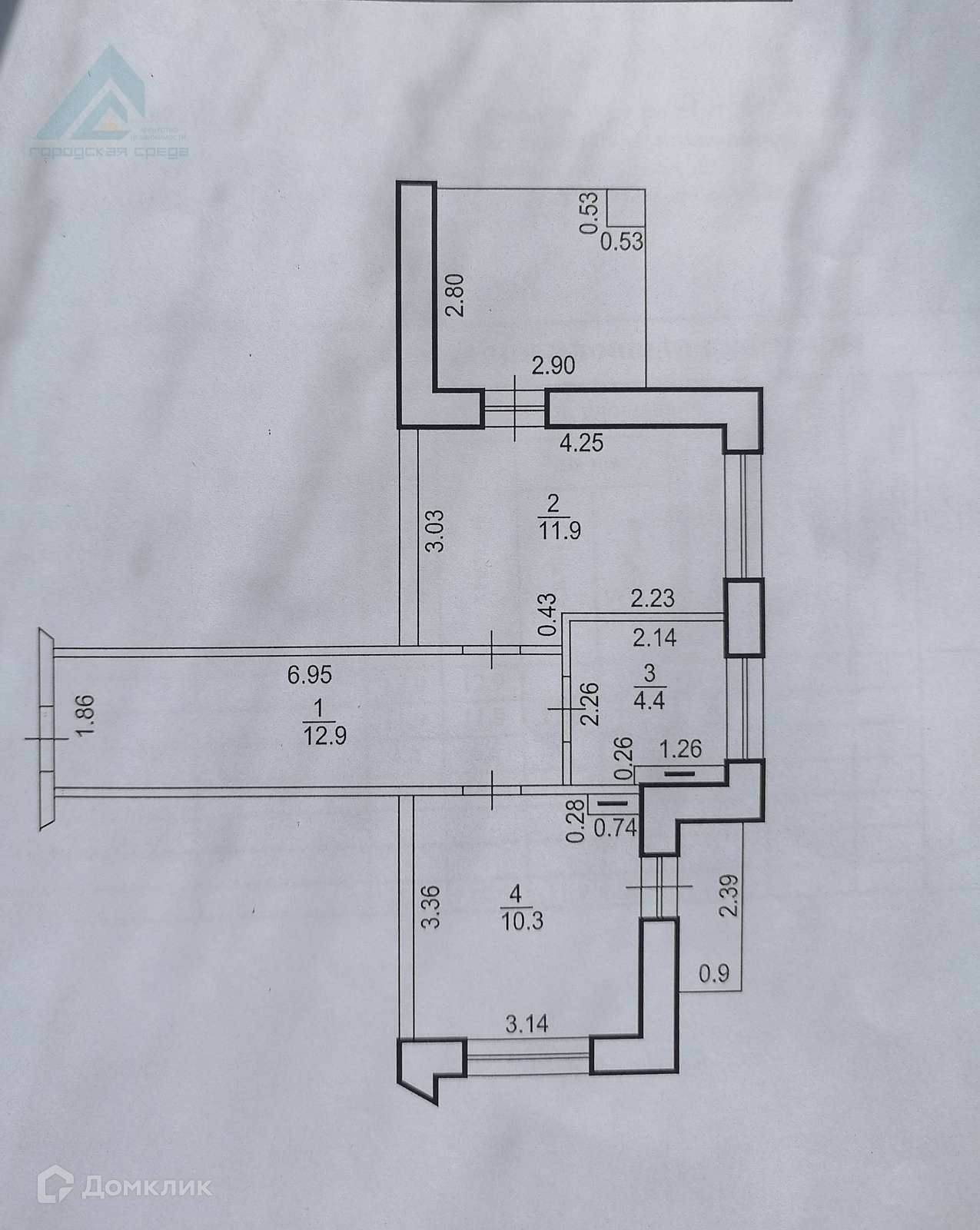 Общая площадь 39.5 м2
