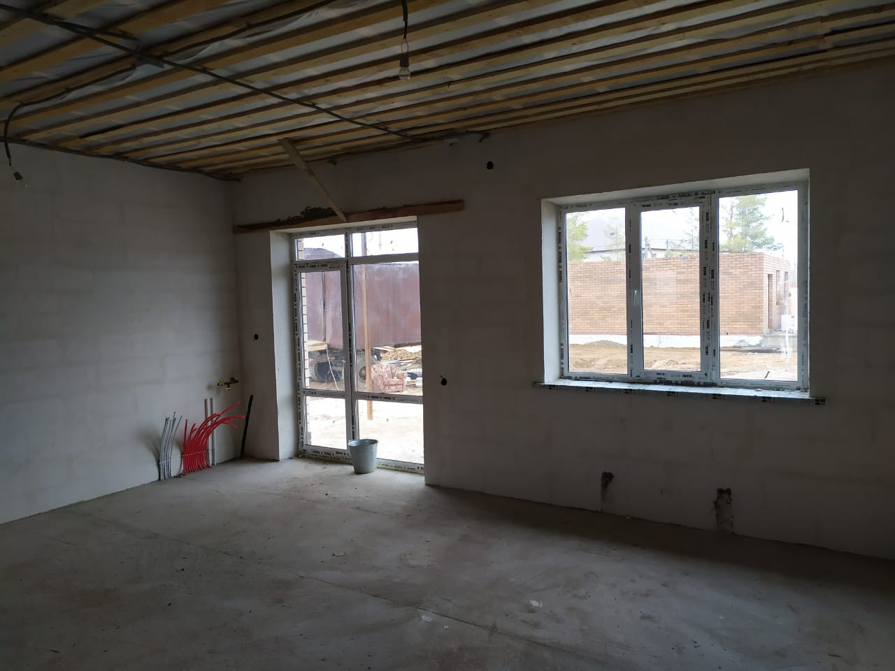 Качественная предчистовая отделка: штукатурка, шпаклевка, вся разводка, тёплый пол по всему дому, двухконтурный газовый котел, радиаторы, хорошая металлическая входная дверь, пластиковые окна с ламинацией.