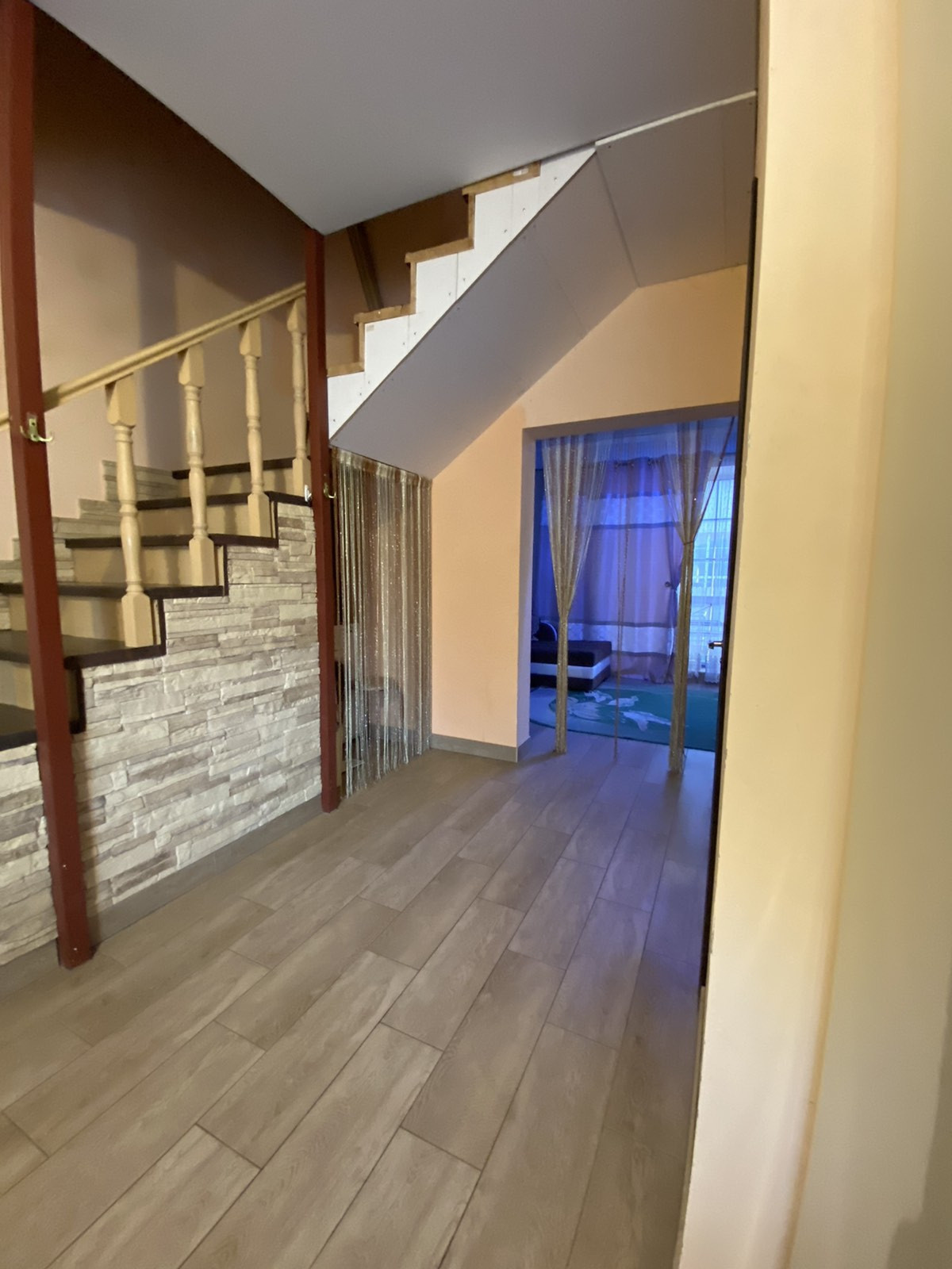 По всему первому этажу ,  тёплый пол.
