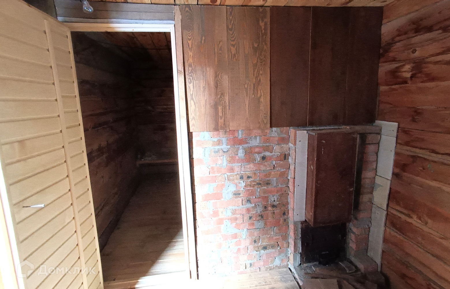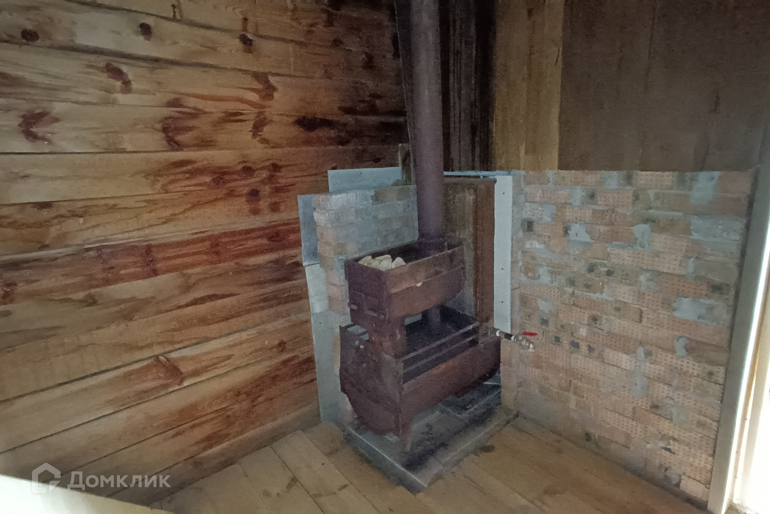 Участок выровнен, огорожен забором из профлиста, забетонирована дорожка, отмостки и терраса под навесом, есть мангальная зона, посажены ёлочки. Дровяная баня с недоделанной крышей функционирует, хороший металлический котел, моечная и парная внутри обшиты деревом.