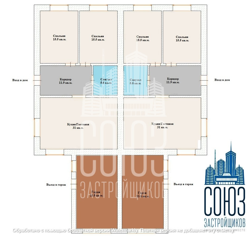 Отличная продуманная планировка: просторная кухня-гостиная, две спальни, санузел, гараж.