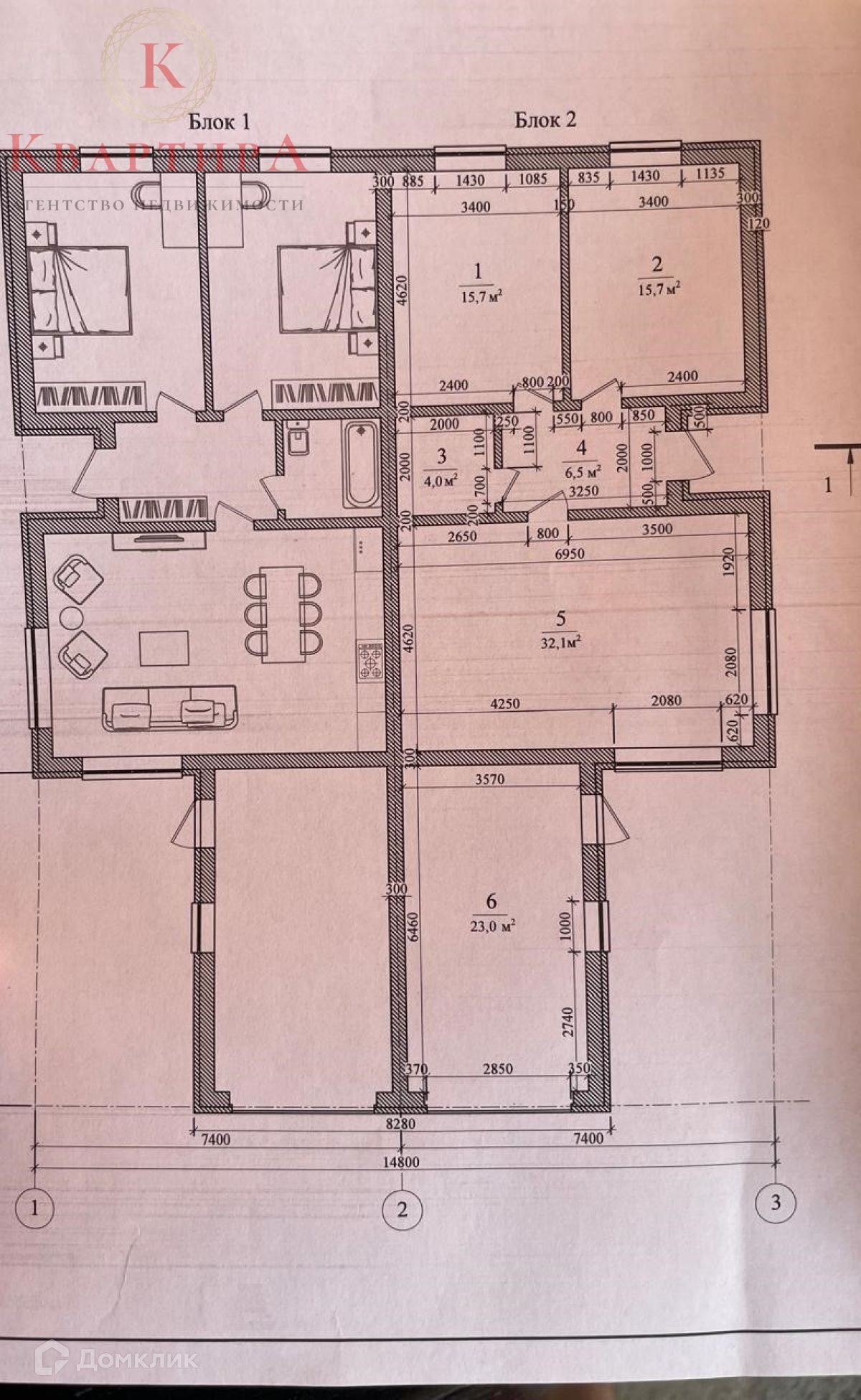 планировка: кухня-гостиная (32 кв.м.), две спальни (по 15,7 кв.м), сан.узел (4 кв.м), холл (6,5)
