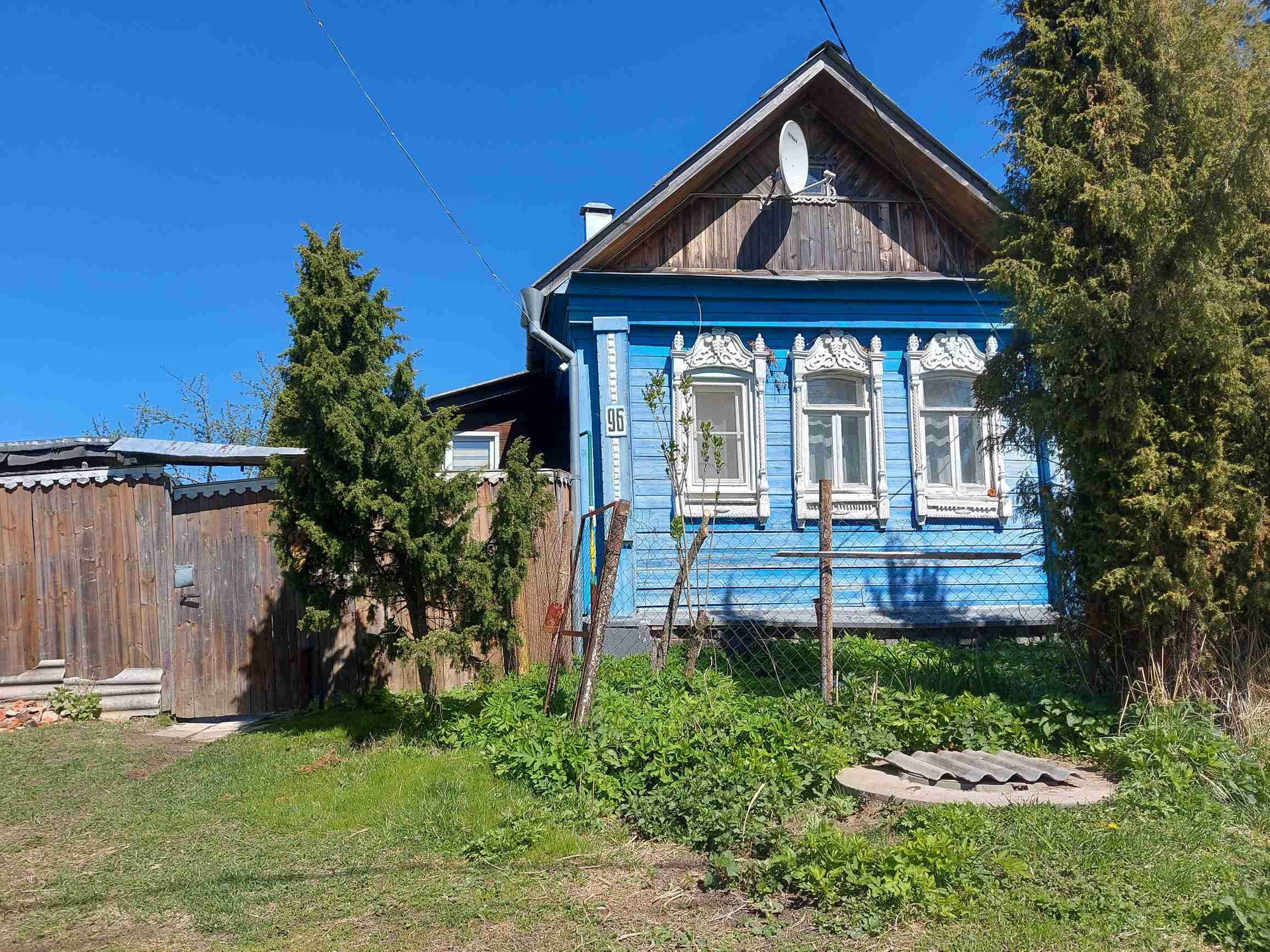Дом находится на самом высоком месте в деревне (на бугру), поэтому участок сухой (под домом не бывает воды), правильной формы.