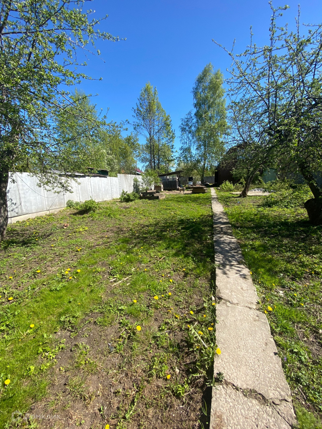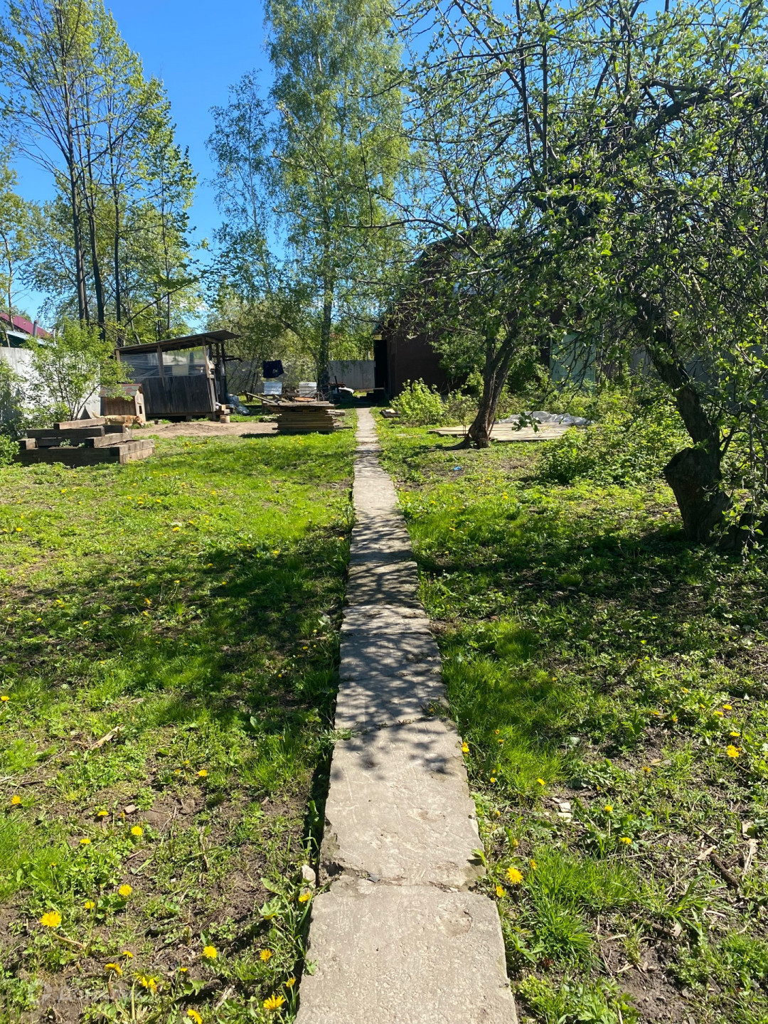 На участке два дома, один оформленный как жилой в ветхом состоянии. Второй дом, в конце участка  новой постройки, в стадии строения.