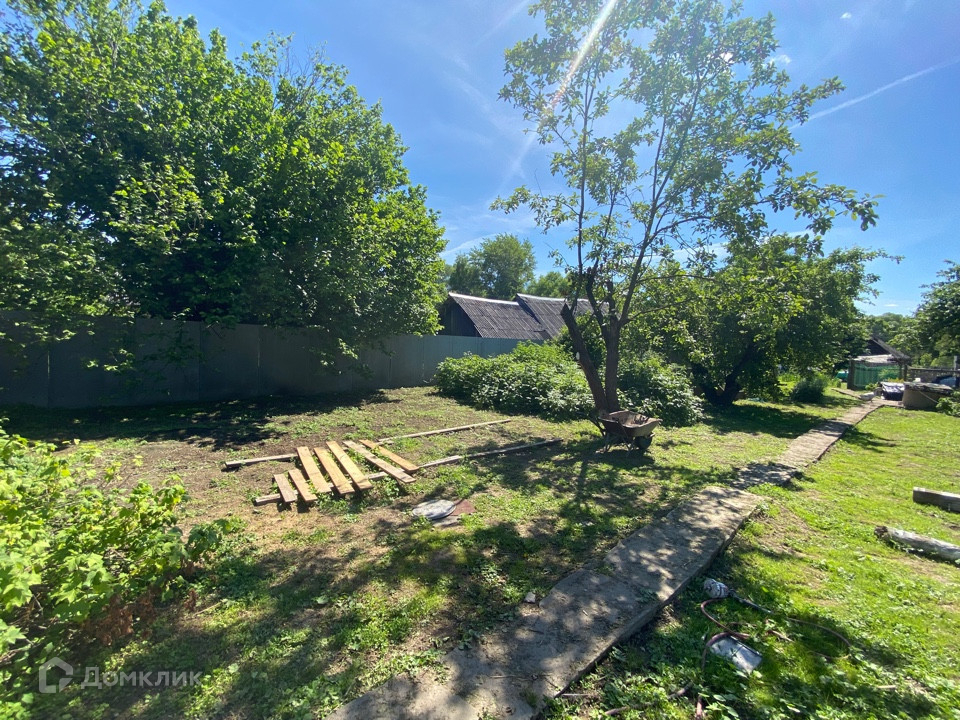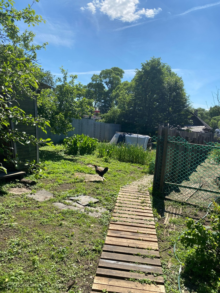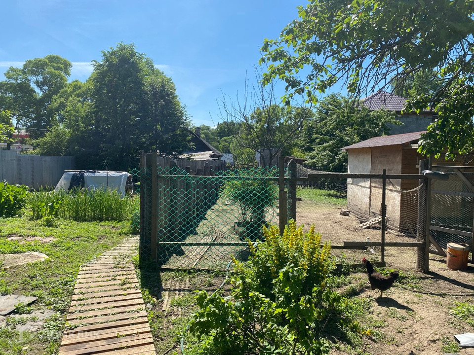 Участок 17.5 соток (ЛПХ) огорожен со всех сторон. Есть колодец, вода заведена в дом. Много плодовых деревьев и кустарников.