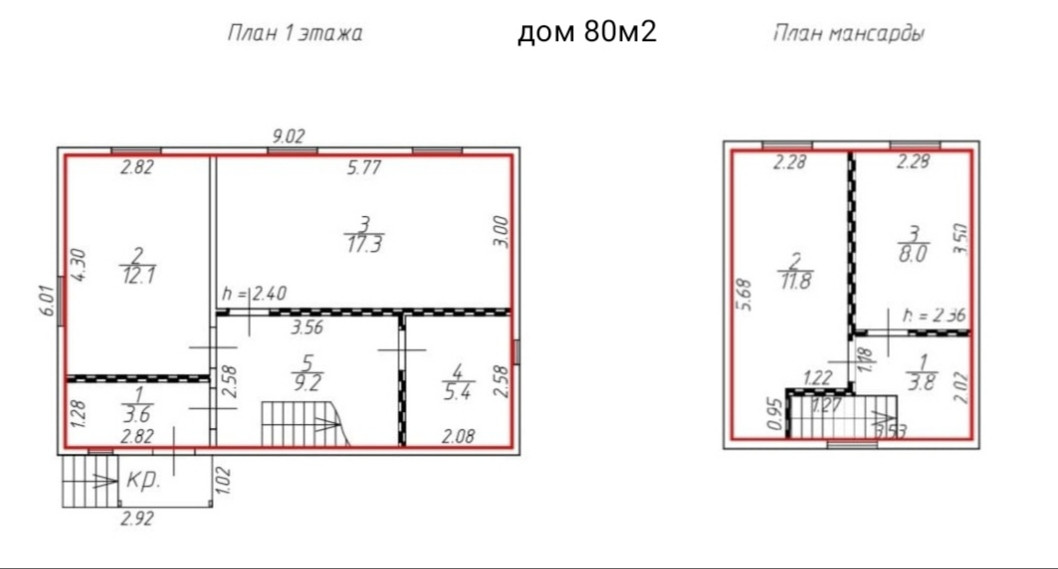 - 2-й этаж: 2 комнаты , санузел ( раковина, унитаз)