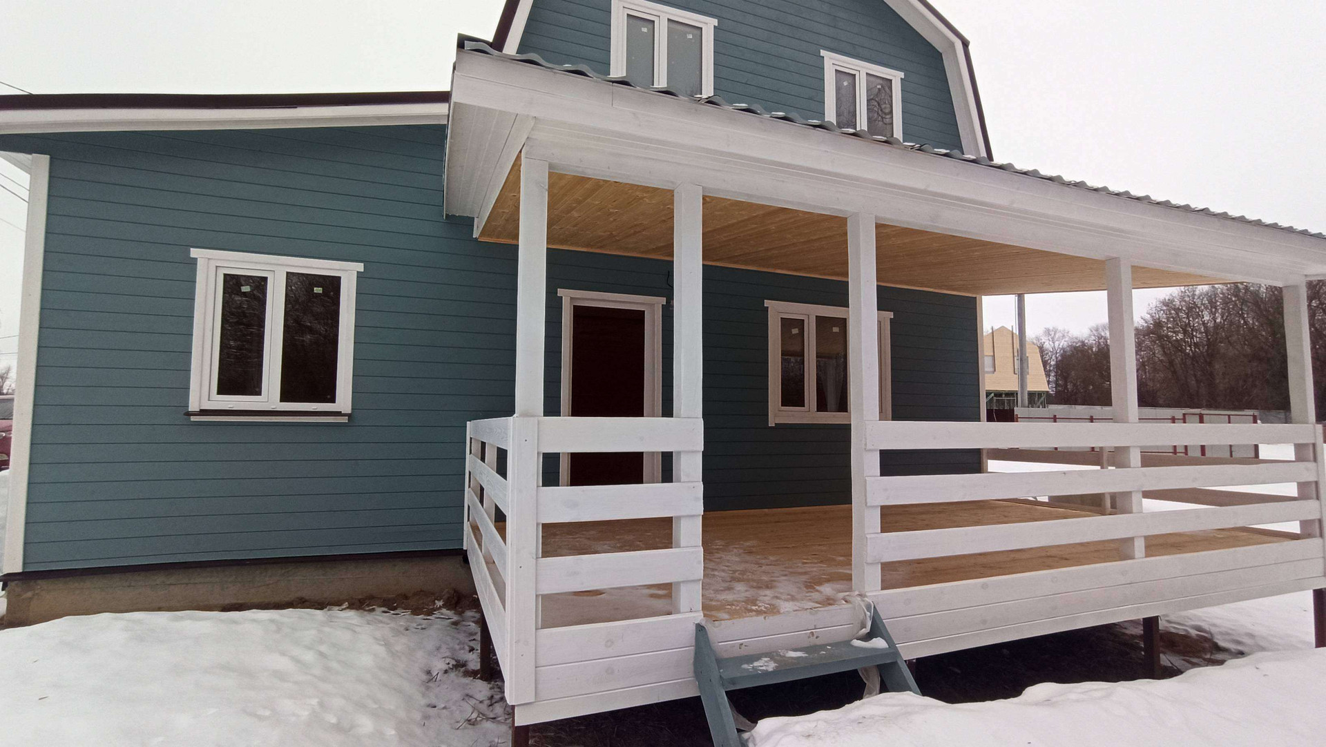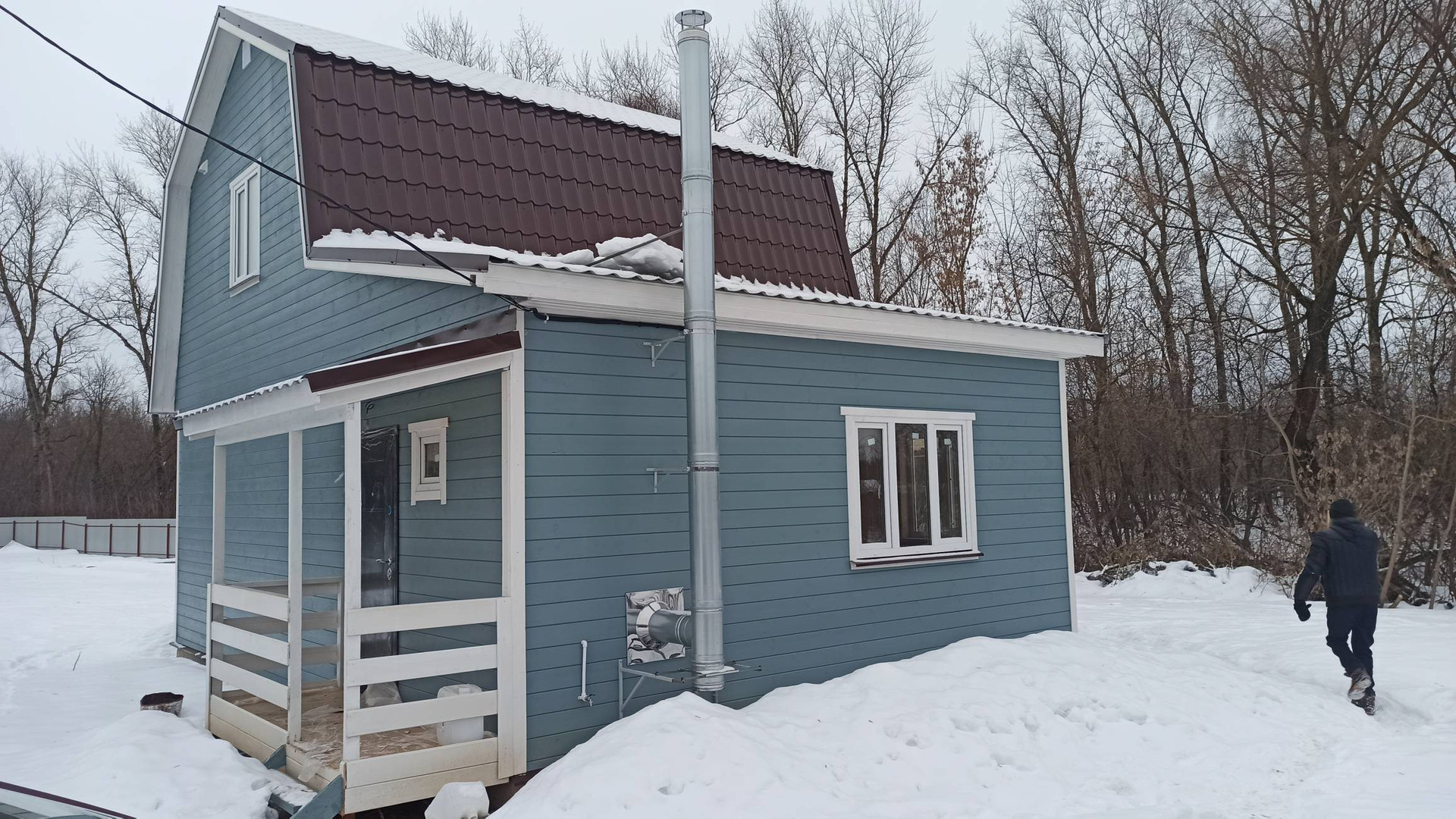 Участок 7 соток с забором, распашные ворота, калитка, парковка и дорожка до дома. Современный дом 80 м2 – полностью готовый для круглогодичного проживания.