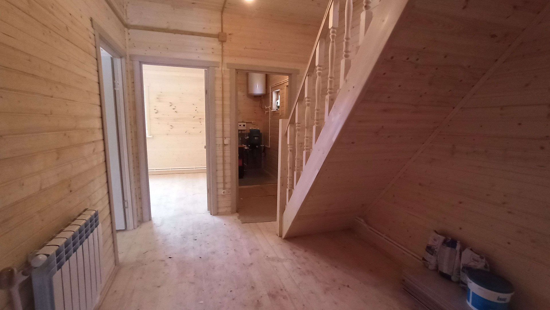 - 1-й этаж: прихожая , холл, кухня-гостиная , комната , санузел в плитке (душевая, раковина, унитаз), выводы под посудомойку и стиральную машину