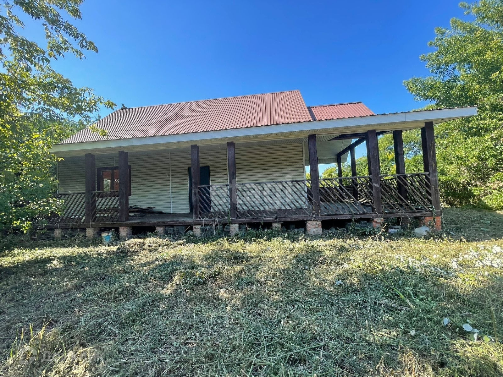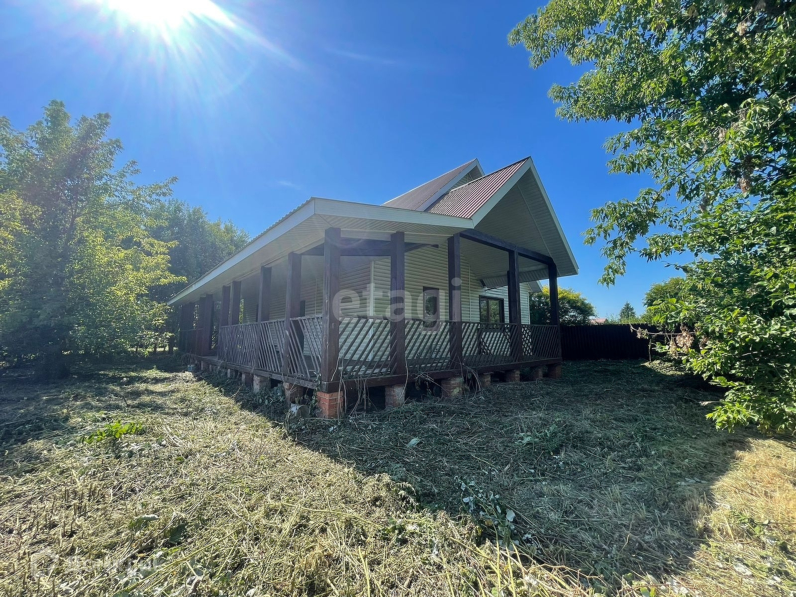 Дом построен из бруса 150х150 , на капитальном ленточном фундаменте, снаружи обшит сайдингом, внутренняя отделка евро вагонка, на полу половая доска, есть шикарная веранда с лицевой стороны дома.