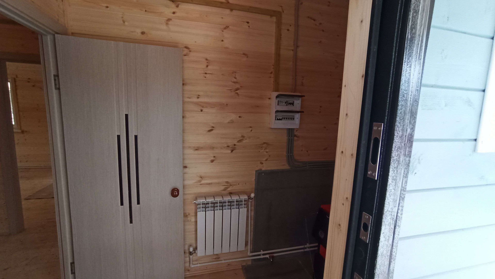 - 1-й этаж: прихожая , холл , кухня-гостиная , 2 комнаты , санузел (душевая, раковина, унитаз), выводы под посудомойку и стиральную машину