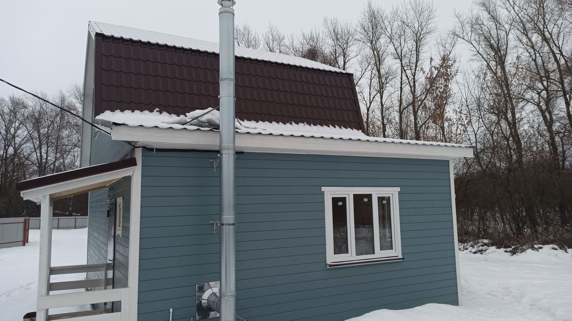 Участок 6.5соток с забором из профнастила, распашные ворота, калитка, парковка и плитка до дома. Современный дом 80м2, полностью готовый для круглогодичного проживания.