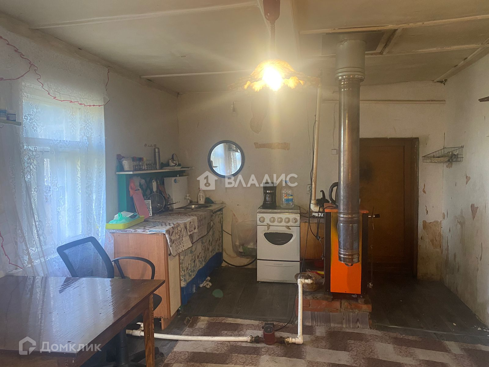 - кухня с современной печкой,обогревает весь дом
