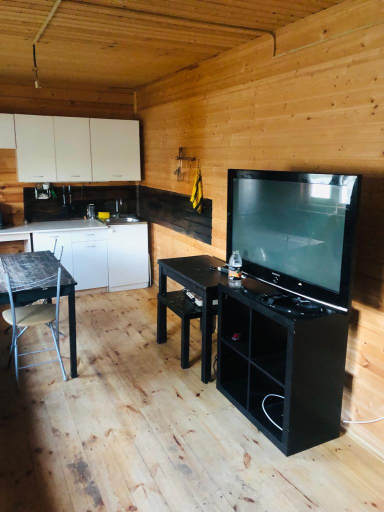 - 1-й этаж: прихожая , холл , кухня-гостиная ,1 комната , санузел (душевая, раковина, унитаз).