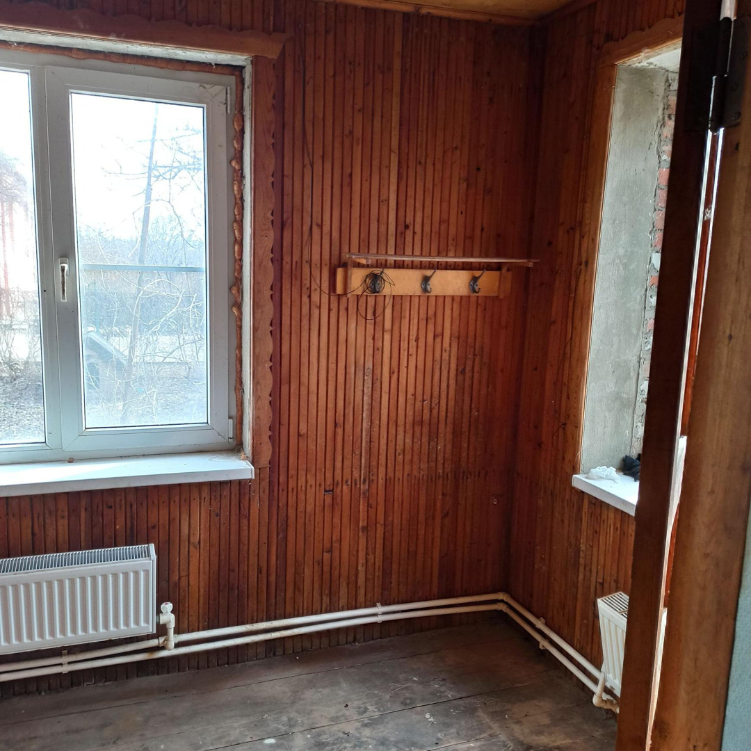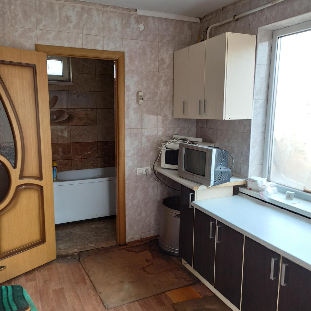 Две жилые комнаты, холл, кухня-прихожая, совмещ. с/у. Высота потолков - 2,5 м.