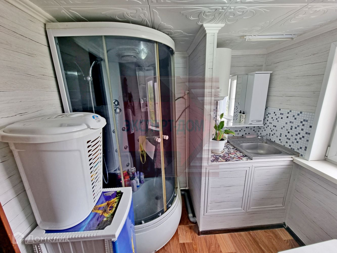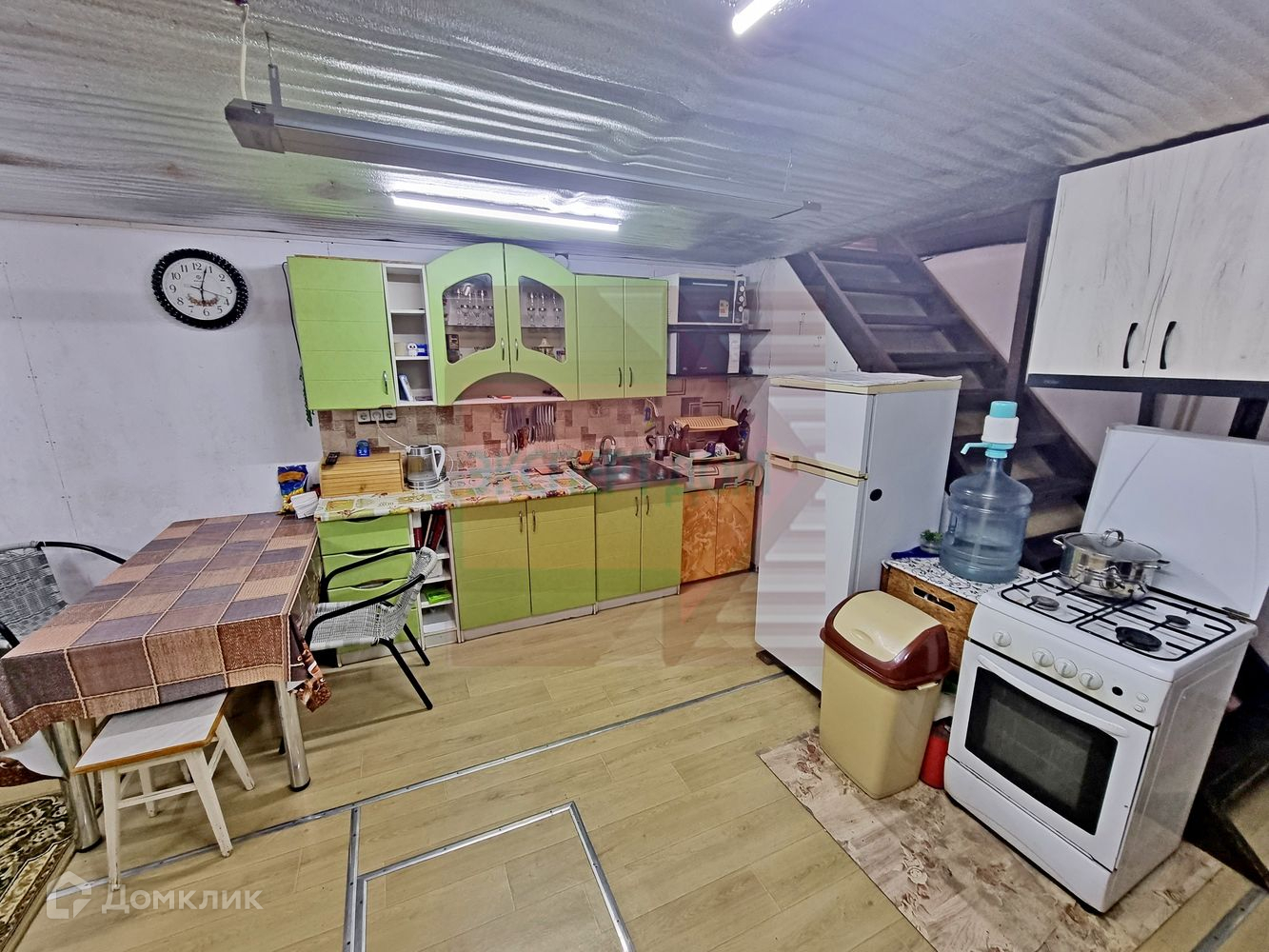 Двухэтажный дом. Хорошо утеплен. Крыша шиферная. Стены шлакоблок. В сторону улицы утеплены пеноплексом и обшиты пластиком. В сторону жилых комнат обшиты влагостойким деревом и утеплены. В доме есть прихожая, просторная кухня-студия с зоной отдыха и спальня, а также раздельный ванная комната и санузел. Хорошее жилое состояние. В жилых комнатах на полу линолеум. Стены обшиты деревом под покраску. Потолок деревянный, утеплён, армстронг панели. В ванной комнате на полу линолеум, на стенах и потолке пластик. Вода берется из скважины. Наполняется 300-т литровый баллон на чердаке, откуда распределяется по дому. Свет центральный, оплата по счетчику. Канализация двухуровневая сливная яма. Электрическое отопление (есть возможность провести газ, проходит по меже). Широкий просторный участок.