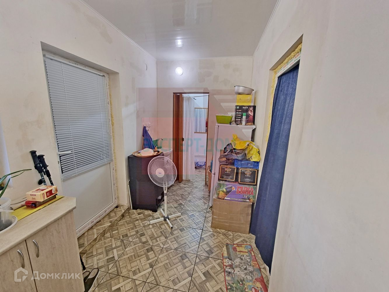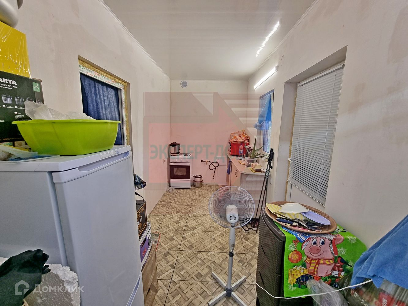 Одноэтажный дом. Стены газоблок. В доме есть прихожая, кухня, жилая спальня, а также совмещенные ванная комната и санузел. В жилой комнате на полу линолеум. Стены и потолок обшиты гипсокартоном. В ванной комнате и кухне на полу плитка, стены оштукатурены, натяжной потолок. В кухне разведены теплые полы. Широкий просторный участок. Вода скважина. Свет центральный. Канализация сливная яма. Газ центральный. Отопление газовое.